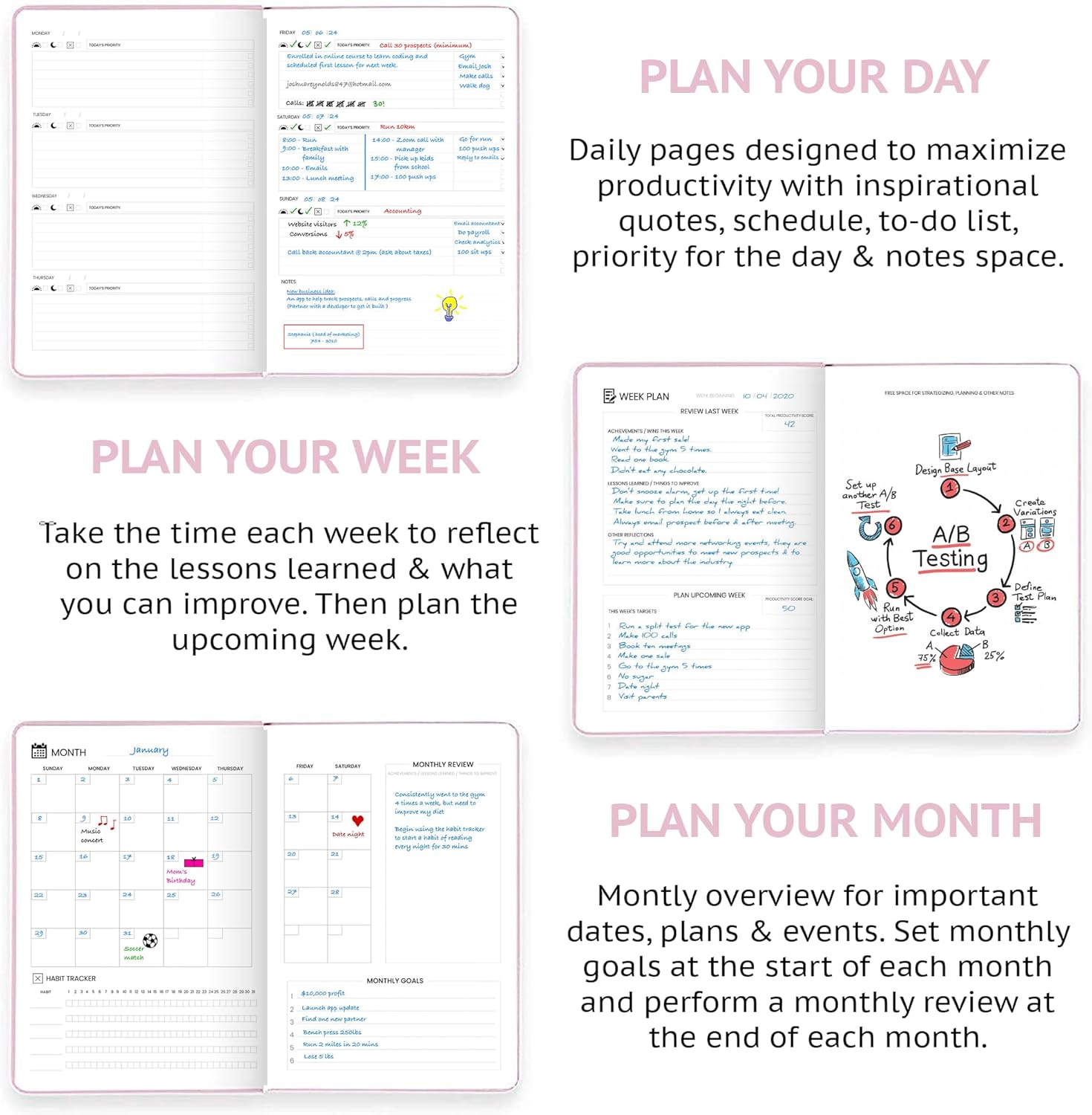 - START ANYTIME & STAY CONSISTENT – With 52 weeks of undated daily planning pages, plus weekly and monthly review sections. You can begin anytime, improve your time management and build a consistent planning habit on your own terms.