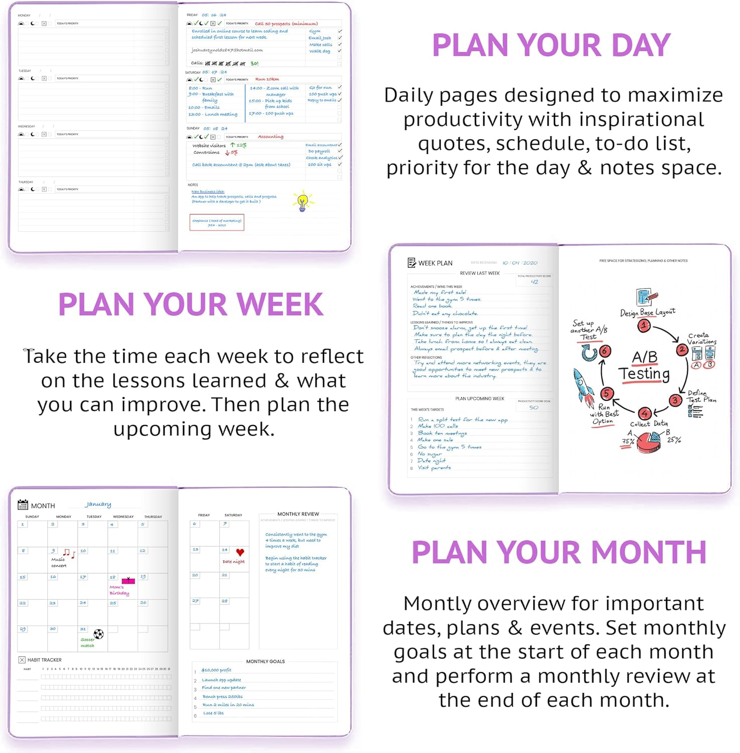 - START ANYTIME & STAY CONSISTENT – With 52 weeks of undated daily planning pages, plus weekly and monthly review sections. You can begin anytime, improve your time management and build a consistent planning habit on your own terms.