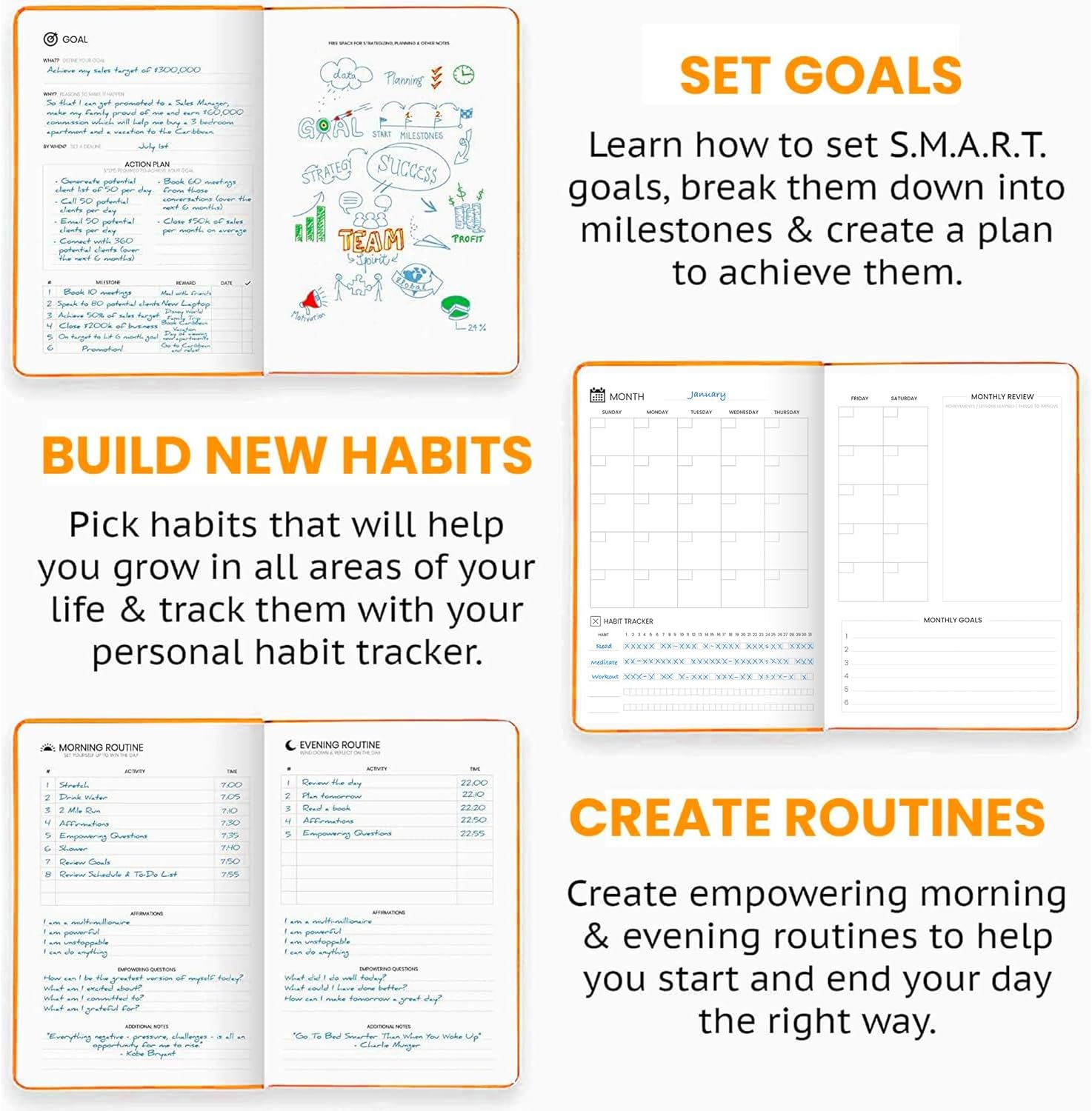 - START ANYTIME & STAY CONSISTENT – With 52 weeks of undated daily planning pages, plus weekly and monthly review sections. You can begin anytime, improve your time management and build a consistent planning habit on your own terms.