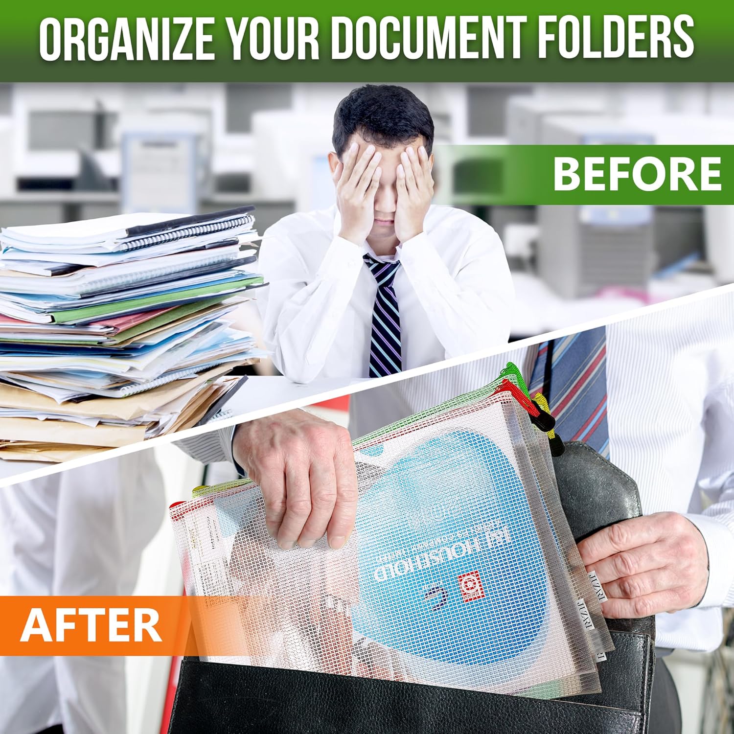- GENEROUSLY-SIZED & DURABLE - Our mesh zipper bag is made from high-quality material, ensuring long-lasting strength & reliability. Safely store your documents, books, notebooks, recipes, invoices & any other items without worrying about wear & tear.