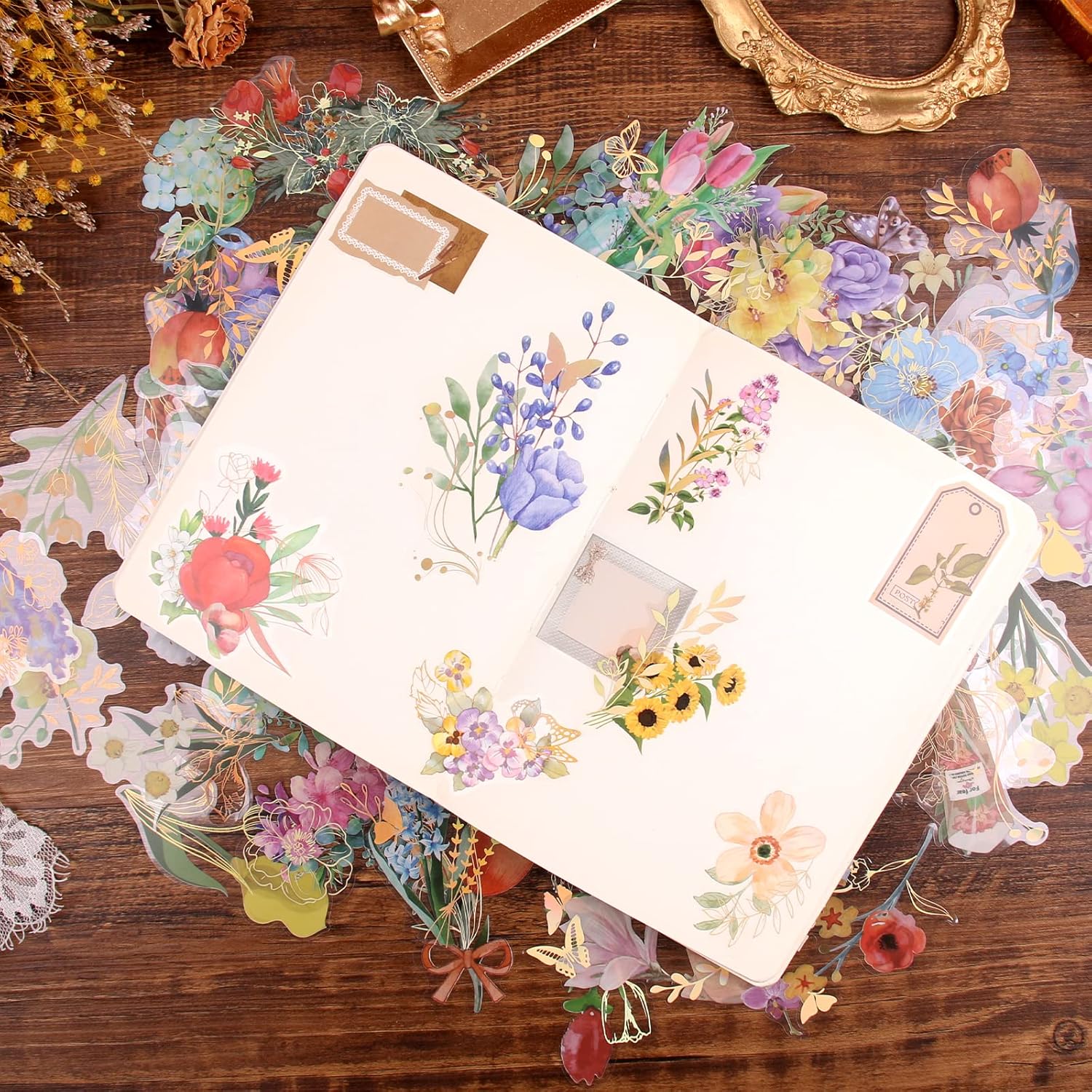 - 3. DIE CUT STICKER SET: Stop getting frustrated with peeling off stickers. All scrapbook floral stickers are die-cut and very easy to peel off by hand, saving your crafting time.