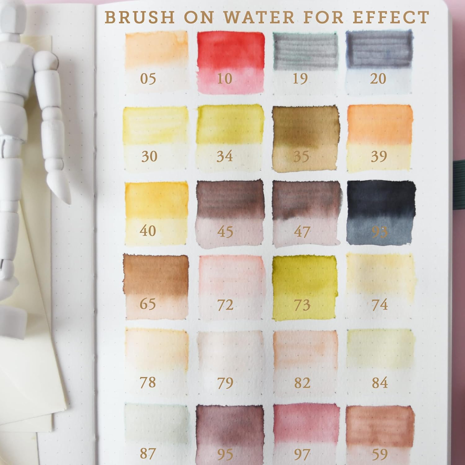 - 24 water based colors: Includes mainly pale and neutral colors as well as some darker greens and grays for coloring floral sketching. You have the flexibility to use as a felt marker or brush on water for a watercolor effect (only on 160gsm or heavier watercolor paper)