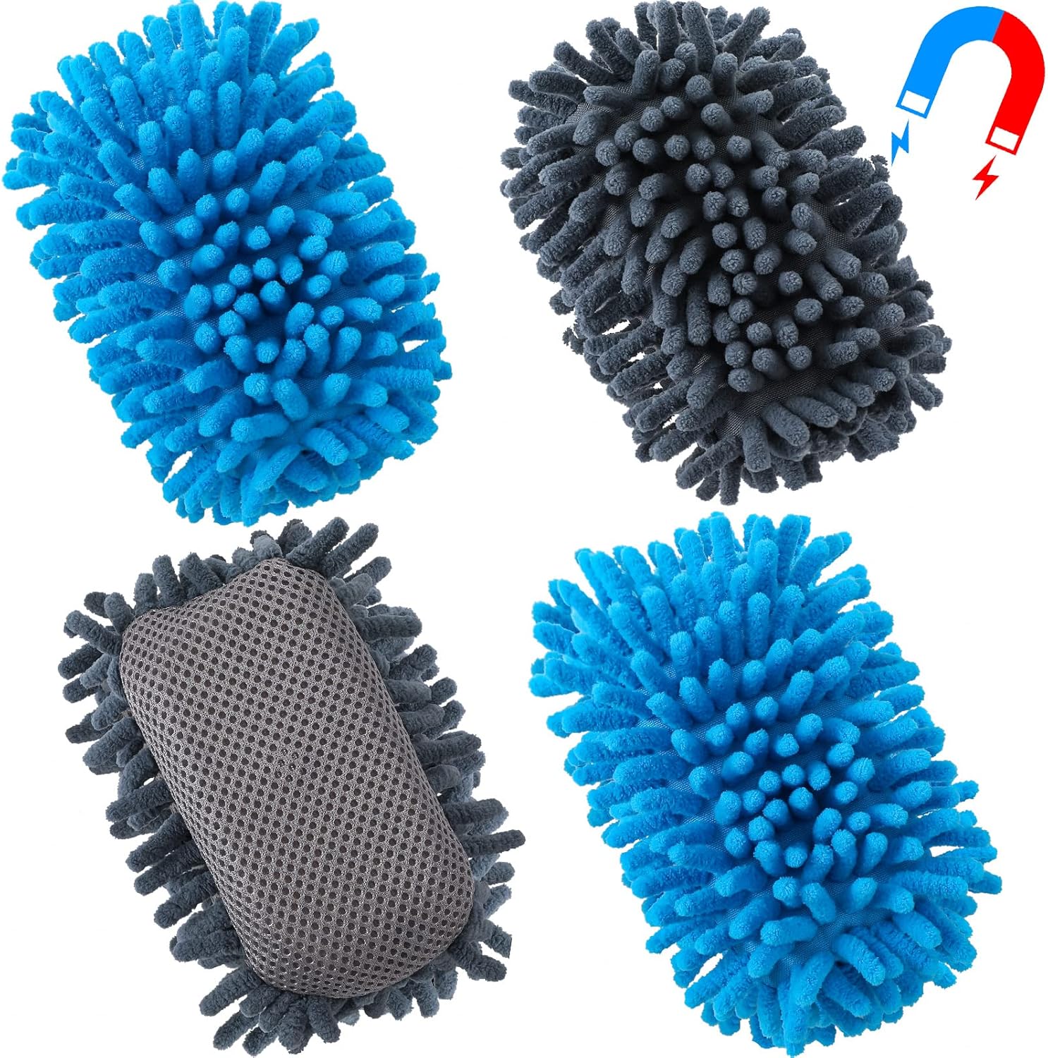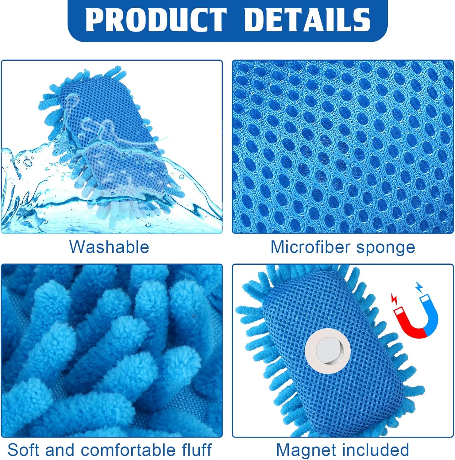Jeyiour 4 Pcs Large Microfiber Shag Dry Erase Erasers, Magnetic, Rectangular, White Board Erasers, Washable for Classroom, Home and Office Use (Gray, Blue)