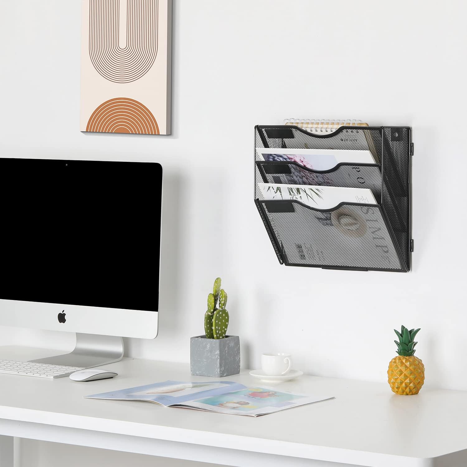- Space Saving: 3 tier metal wall file organizer comes with mounting screws that can be easily mounted on the wall. Use your home or office space more efficiently by keeping your files organized and off the desk and workspace.