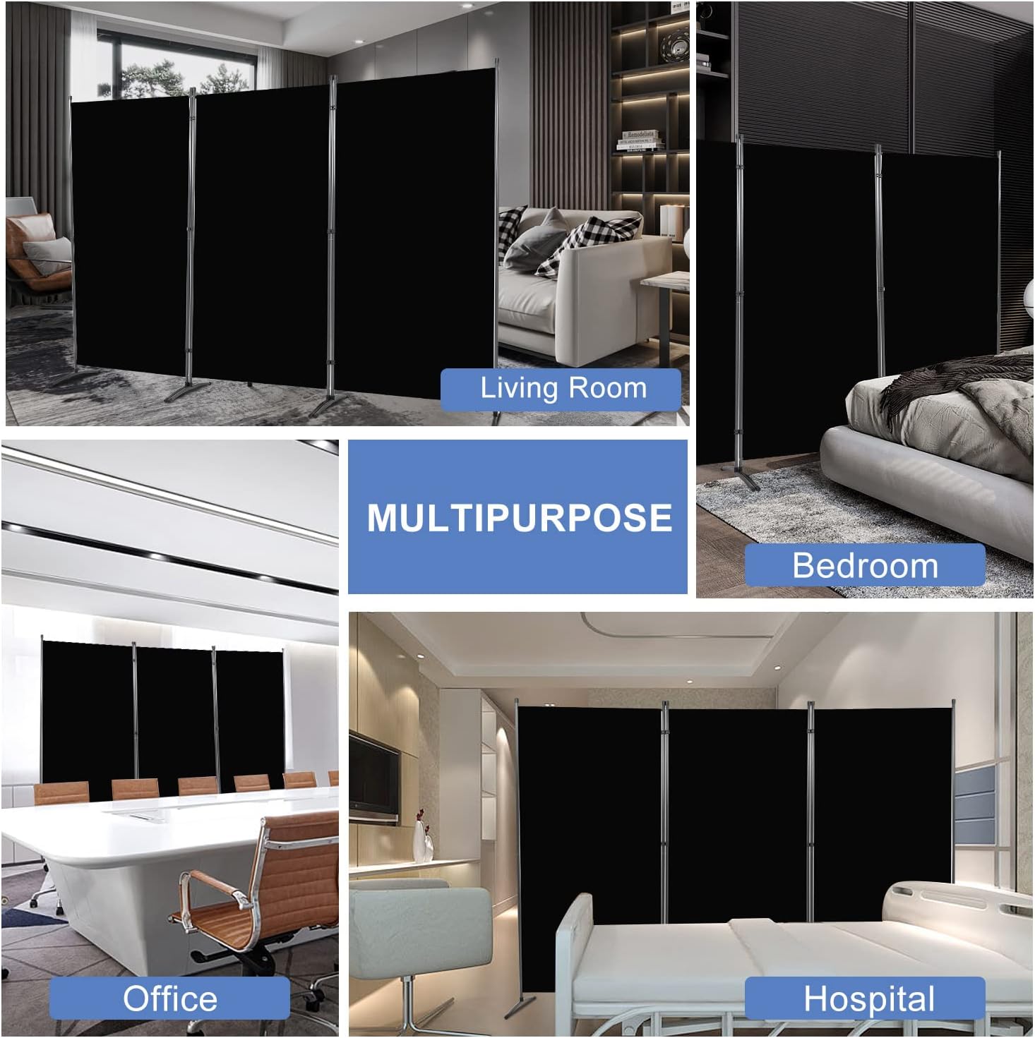 - Round Pad Room Divider: The Room Divider is flexible and easy to move, it's can be divided in to 1-4 panels to meet all kinds of scenes by installing or removing plastic connectors. The metal base with round pad fits better to the ground and provides better grip for a more stable stand. You can use our room dividers to separate bedroom, living room, dorm, garage, study, office, resturant, block strong light at the window, as well as work as zoom meeting background