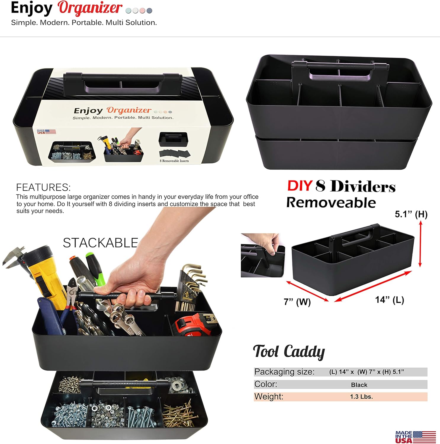 - EXTRA LARGE SIZED: Each Measures 14" x 7" x 5.1" high, Easy to clean with water and soap. 10 PACK -Black Enjoy Organizer.