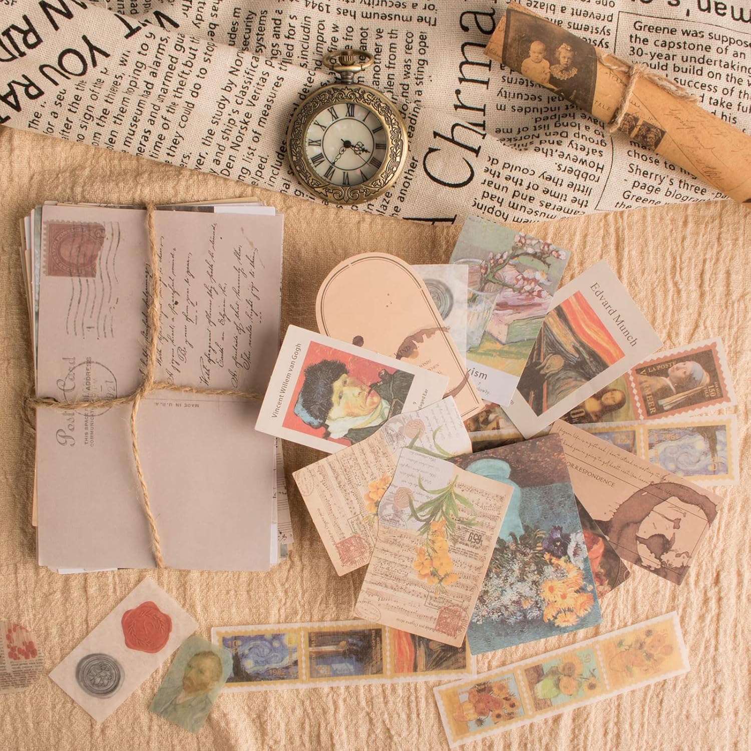 - 【Art Themes】200 Pieces art design themed assorted paper & stickers, including sheet music and envelopes, abstract paintings, old newspapers, vintage handwritings, flower paintings, various stamp stickers and more. Great for junk journaling, scrapbooking, collage or projects that require an artistic touch!