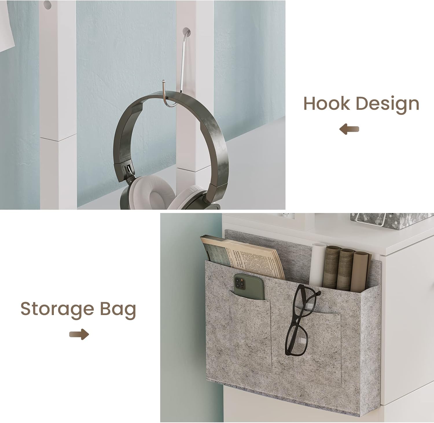 Itaar 2 Drawer File Cabinet, Filing Cabinet with Lock fits Letter, Legal, A4 Size, File Cabinets for Home Office with Storage Bag, Open Shelf and Hook, White
