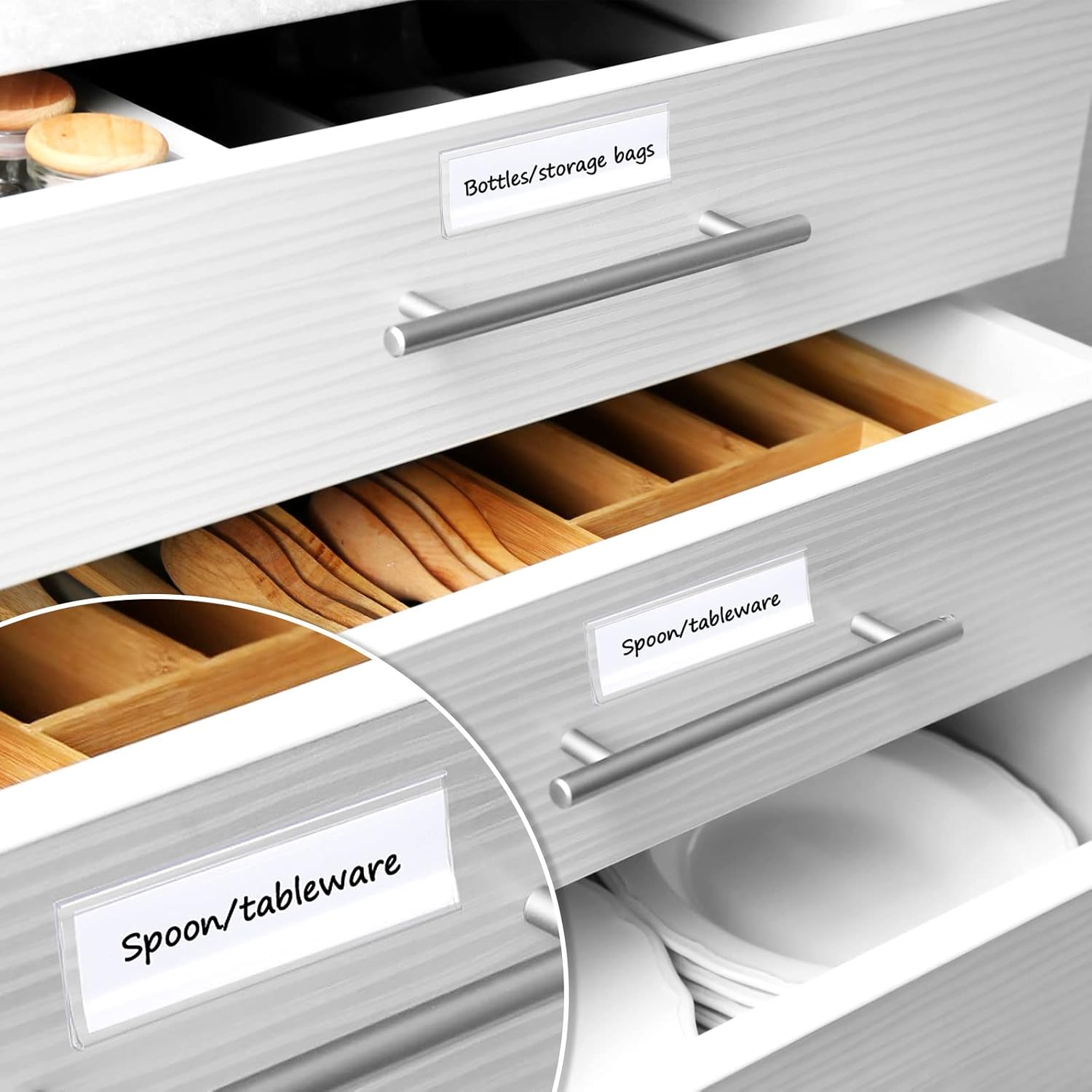 - What You Can Get: you will get 150 pieces of self adhesive label holders, measuring about 3 x 1 inch, and you will get 150 replacement white card strips, sufficient quantity will meet your daily use and replacement