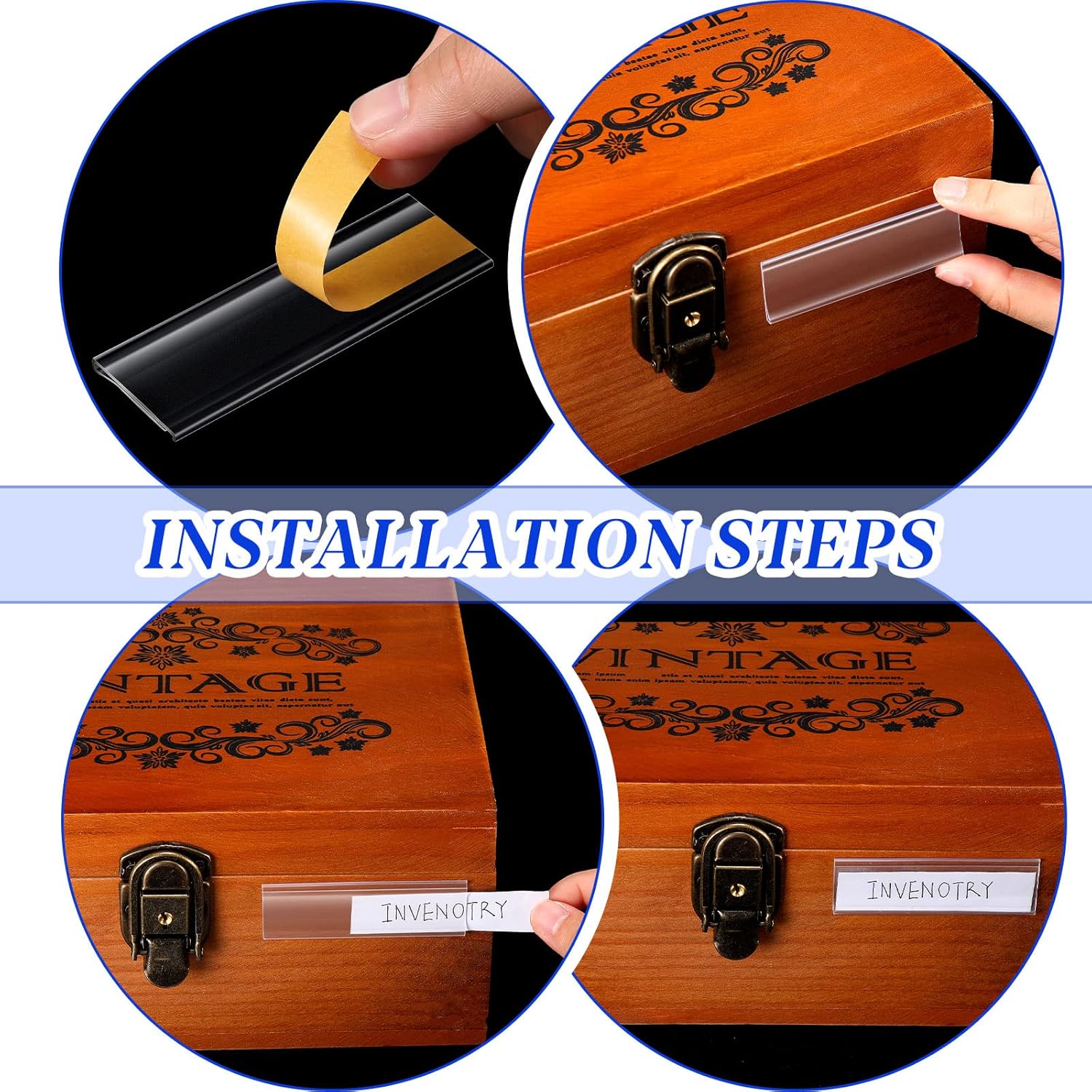 - Quality Material You Can Get: these clear labels adopt PVC as main material, waterproof and reliable, not easy to break or deform, can keep your labels and tags clean and tidy, and there is PET transparent adhesive tape on the back of the plastic label holder, sticky and easy to use, offering you a long time of use