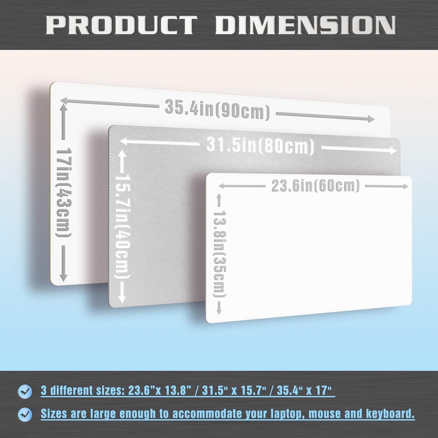 - MULTIFUNCTIONAL DESK PAD: 3 sizes to meet your demand. Great to accommodate your laptop, mouse and keyboard. Its comfortable and smooth surface can be a mouse pad and a writing pad.