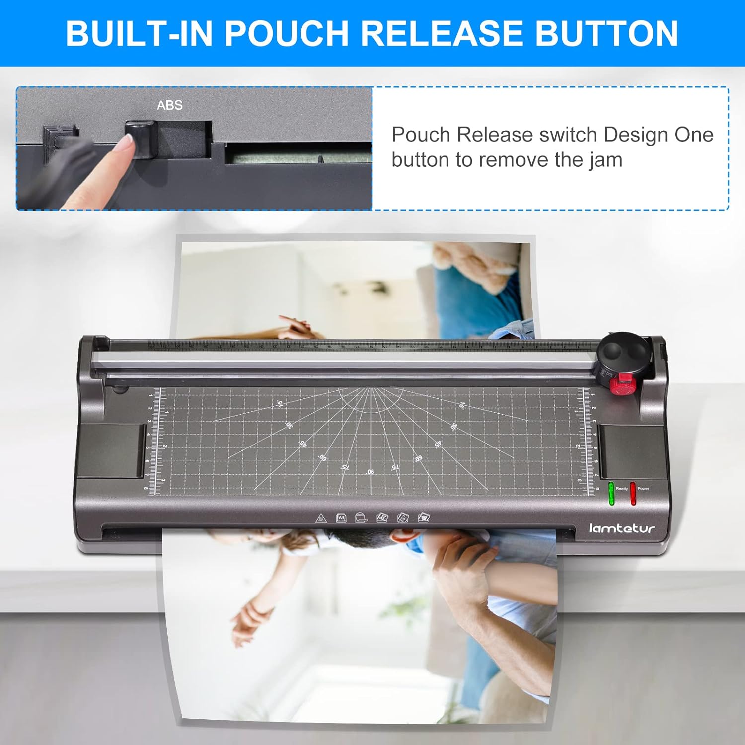 - 【Flatter Lamination Effect and ABS One-Touch Paper Jam Prevention】Different from the traditional glass heating tube, we use stronger mica sheet for heating, so that the heat is more stable, more flat and less prone to blistering. The one-touch ABS eject function can better for no jam.