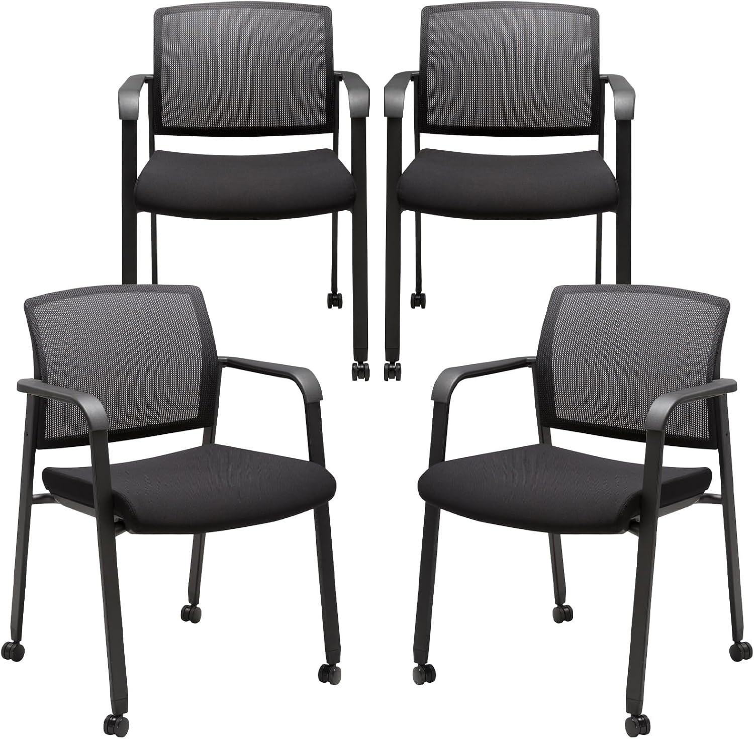CLATINA Mesh Back Guest Reception Arm Chairs with Wheels, Waiting Room Chairs with Upholstered Fabric Seat and Ergonomic Lumbar Support for Office