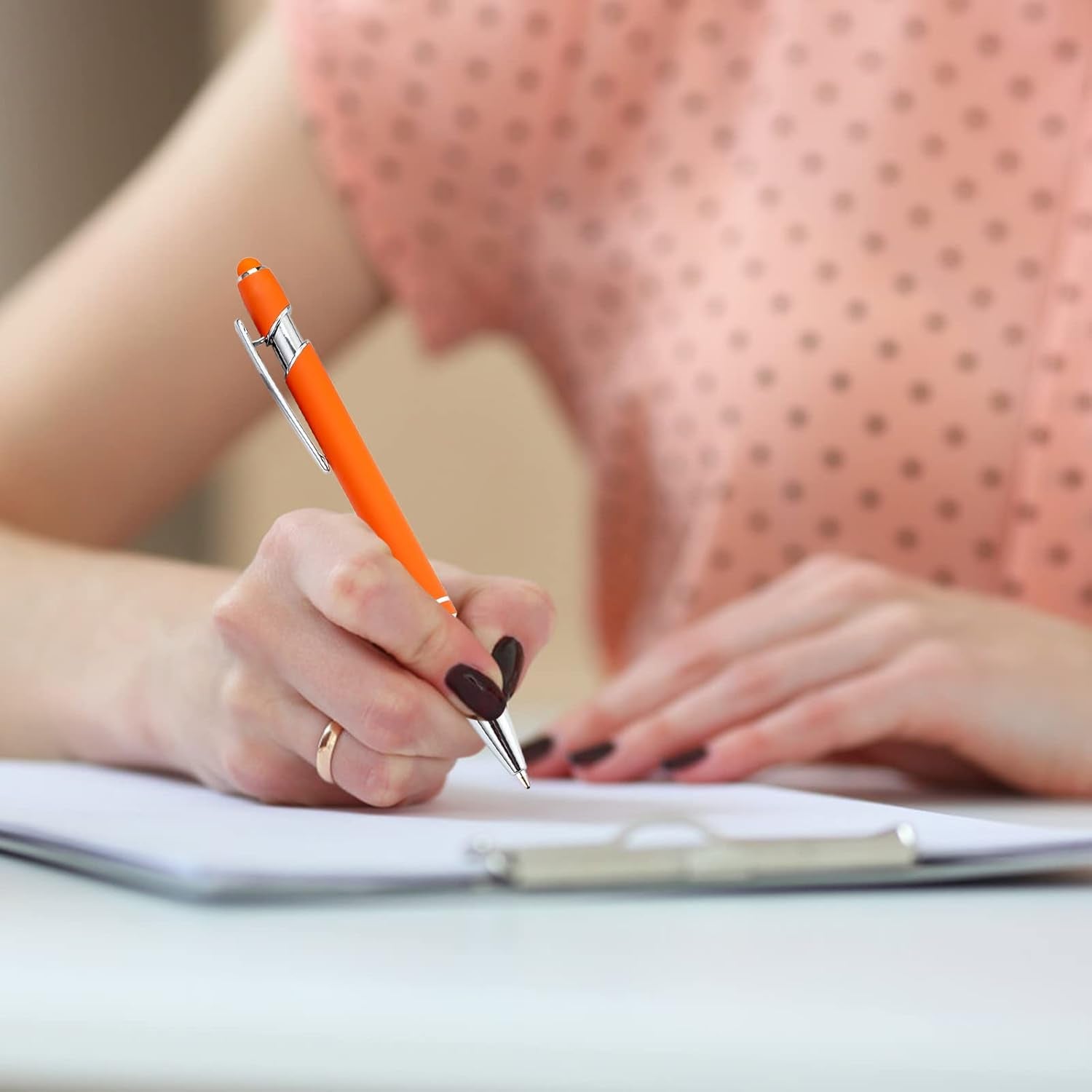 Pasisibick 12-Pack Orange Ballpoint Pens with Stylus Tip - 2 in 1 Metal Stylus, 1.0 mm Medium Point, Smooth Pen for Touch Screen Tablet