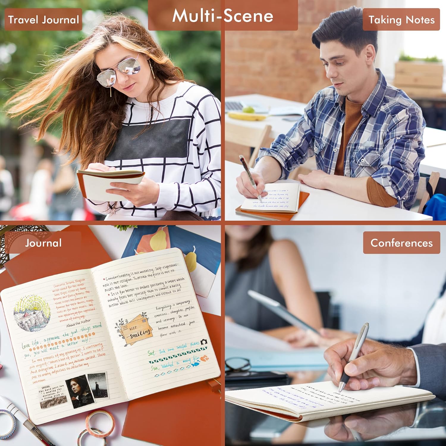 - These travel journals bulk for women have 92 blank lined pages (46 sheets), which would be sufficient for daily usage. The note taking notebooks have a smooth cover, round corners and tight stitching, which are designed to lay 180° flat. Some quick notes can help you remember important dates and find the page you want in a very short time.