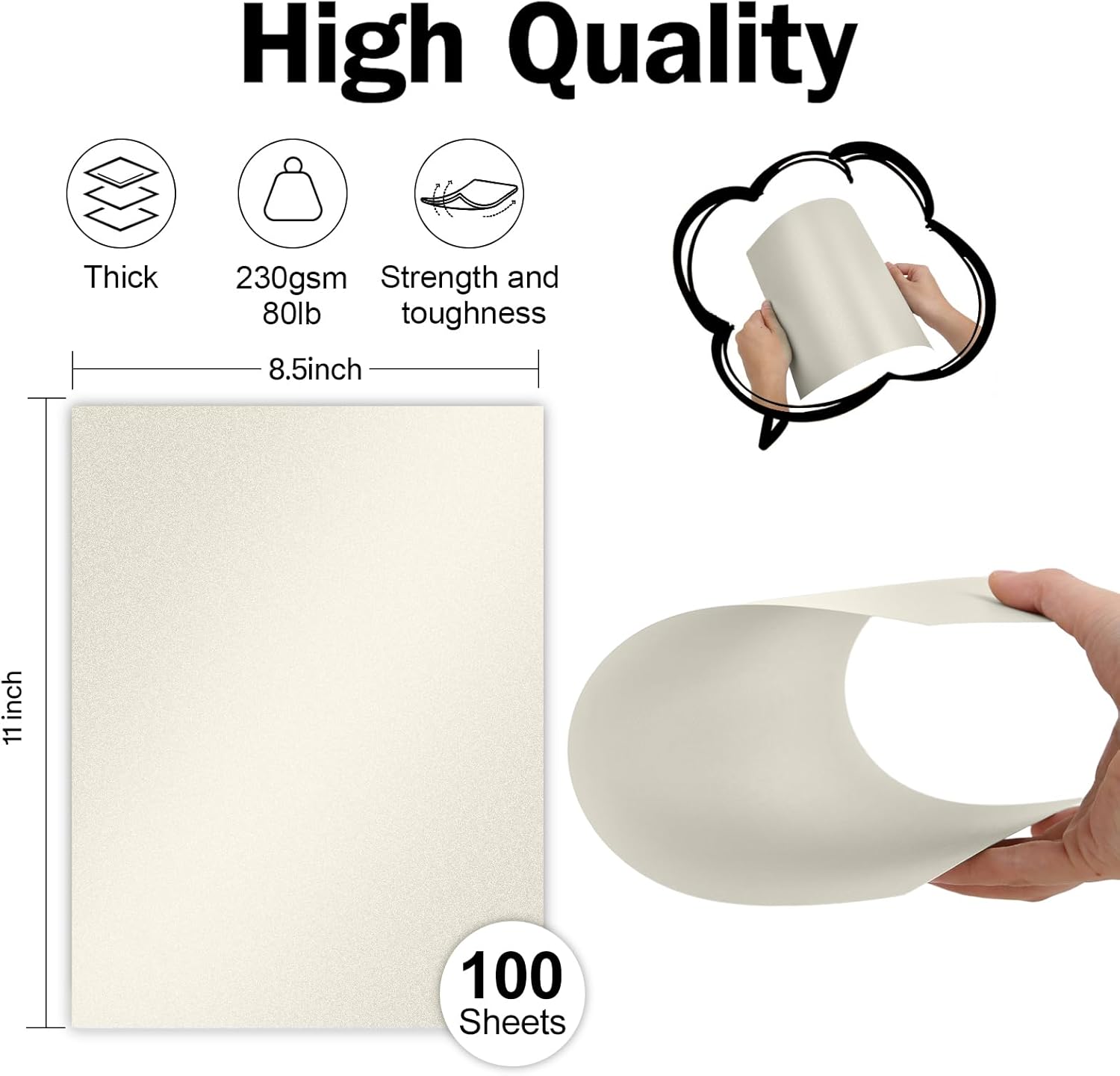 100 Sheets Silver Shimmer Cardstock 8.5 x 11 Metallic Paper, Goefun 80lb Card Stock Printer Paper for Invitations, Crafts, DIY Cards,Graduations