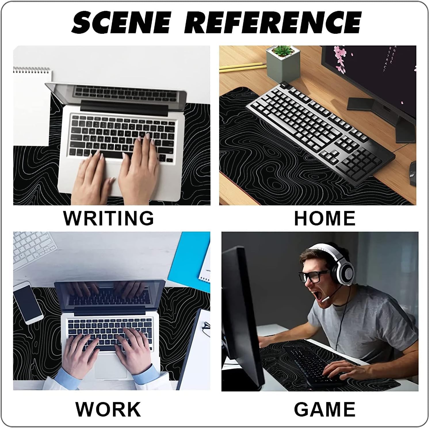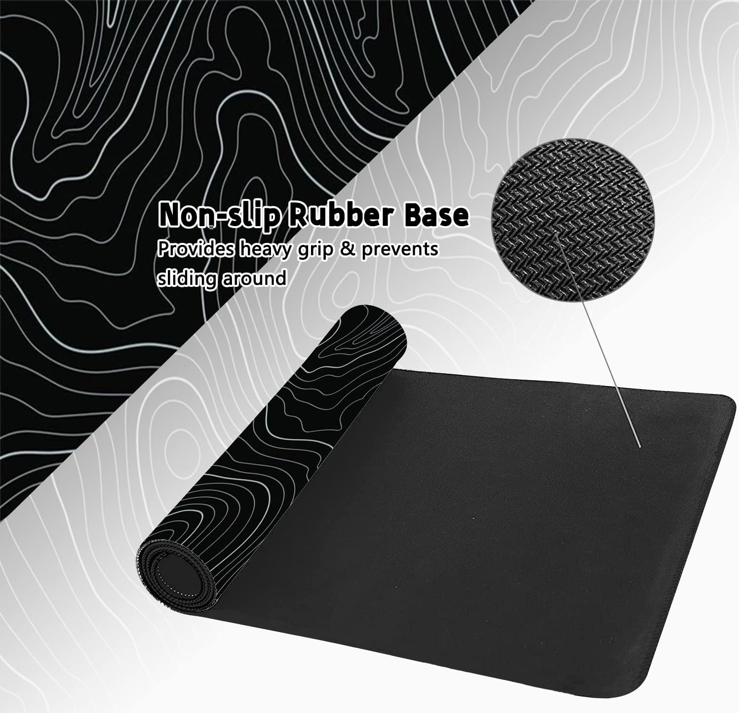 Desk Mat, Topographic Map Lines Pattern Large Desk Pad Extended Gaming Mouse Pad, 35.4 x 15.7inch Mouse Pad with Non-Slip Rubber Base Stitched Edges, Home Office Decor for Women Girls Men Boys