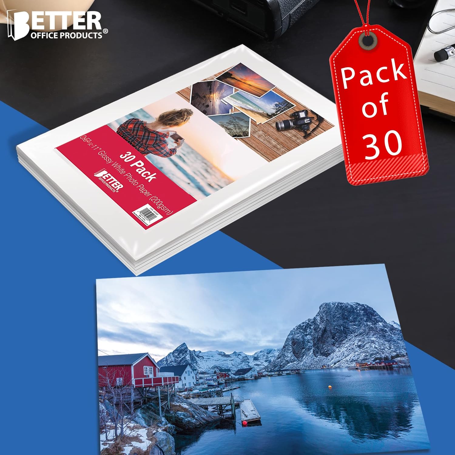 Better Office Products Glossy Photo Paper, 8.5 x 11 Inch, 30 Sheets, 200 gsm, Letter Size, 30-Count Pack