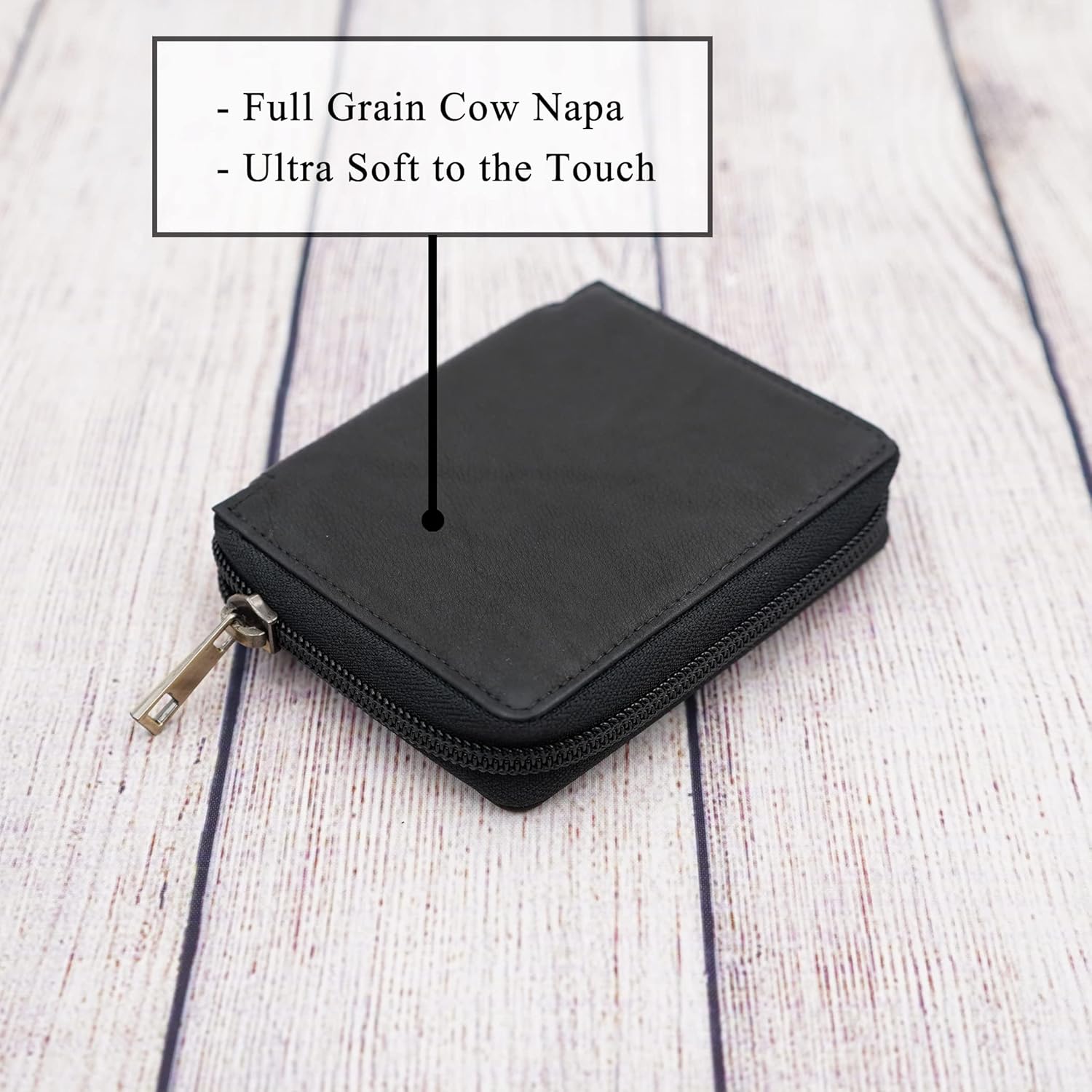 ag wallets Mens Zip Around Leather Wallet with Inserts (Black Napa)