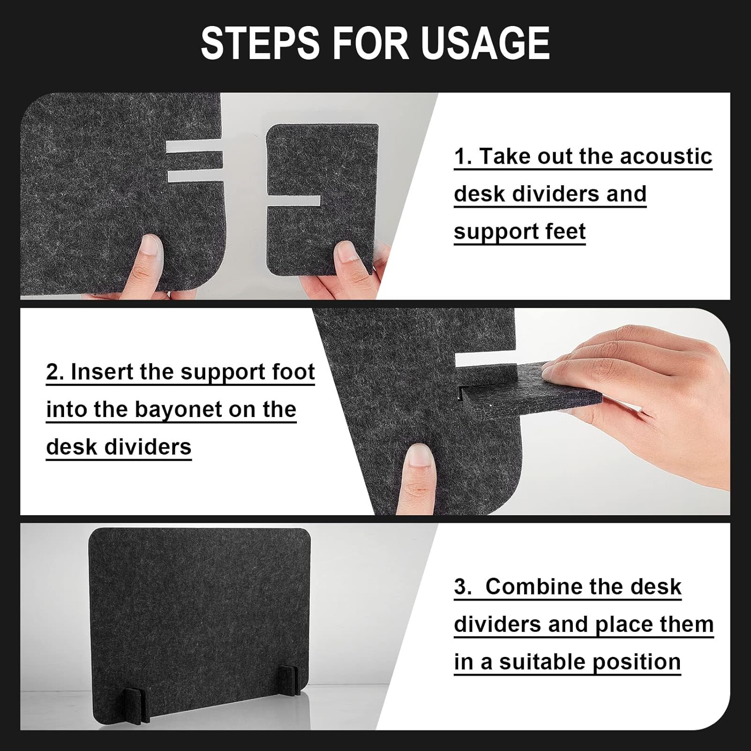 - Ample Quantities to Use and Share: we have prepared a total of 4 pieces of acoustic desk dividers for you in the package, each divider is equipped with 4 pieces of support feet; The abundant quantity can satisfy your use and replacement requirements in daily life, and you can also share them with your close friends