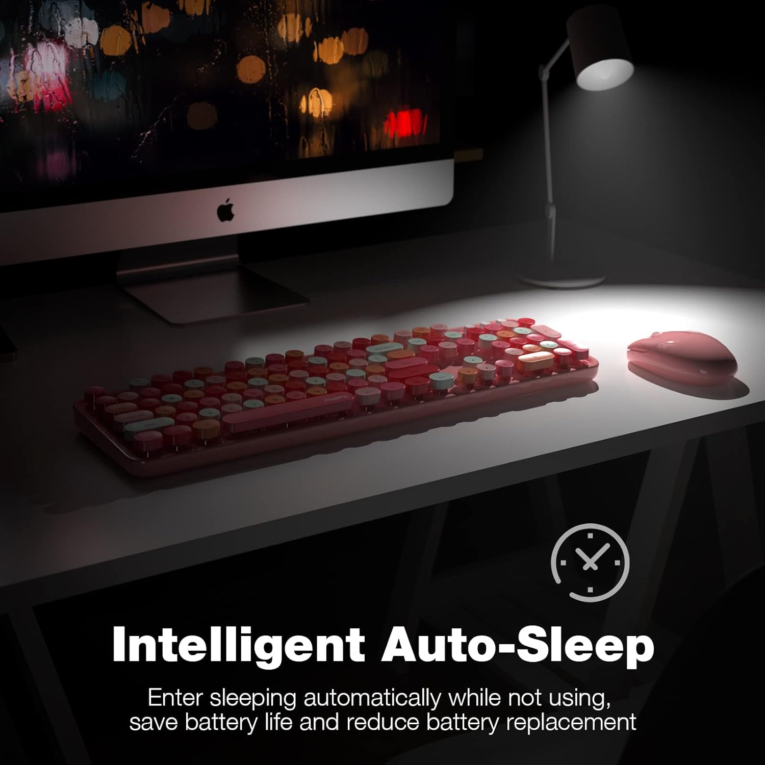 - 【Auto power saving】The keyboard and mouse will go into sleep mode for saving batteries after being idle for 5 minutes. Press any key to wake up immediately.