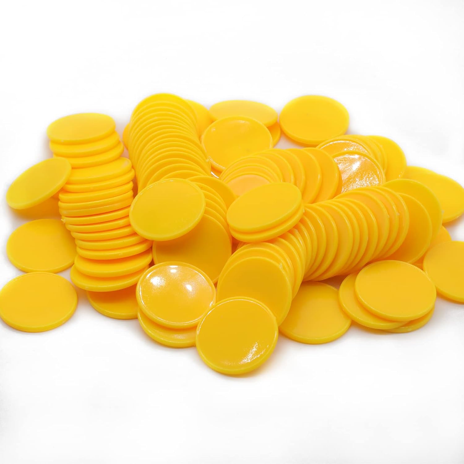 Set of 100 Opaque Plastic Learning Counters Mini Poker Chips Game Tokens with Storage Box (Yellow, 1 Inch)