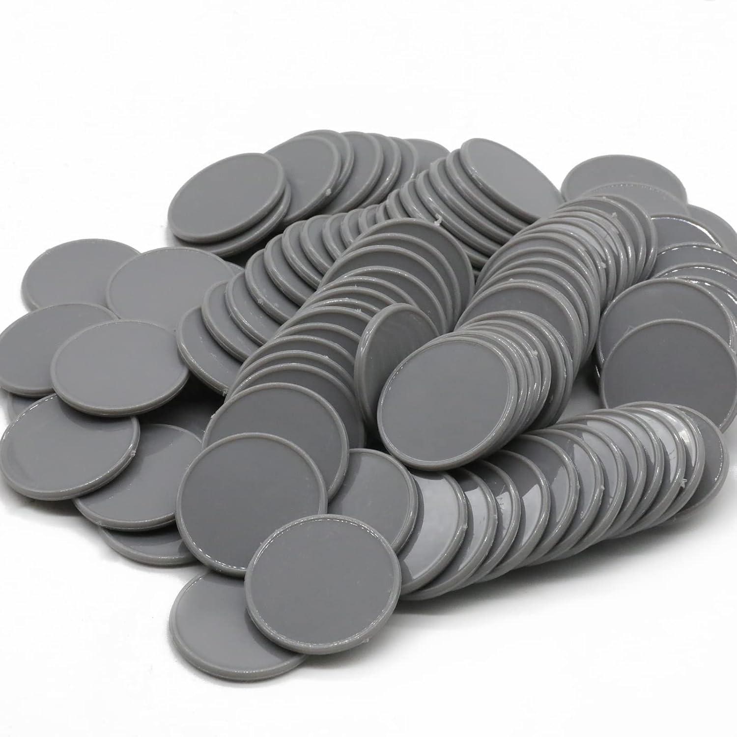 Set of 100 Opaque Plastic Learning Counters Mini Poker Chips Game Tokens with Storage Box (Gray, 1 Inch)