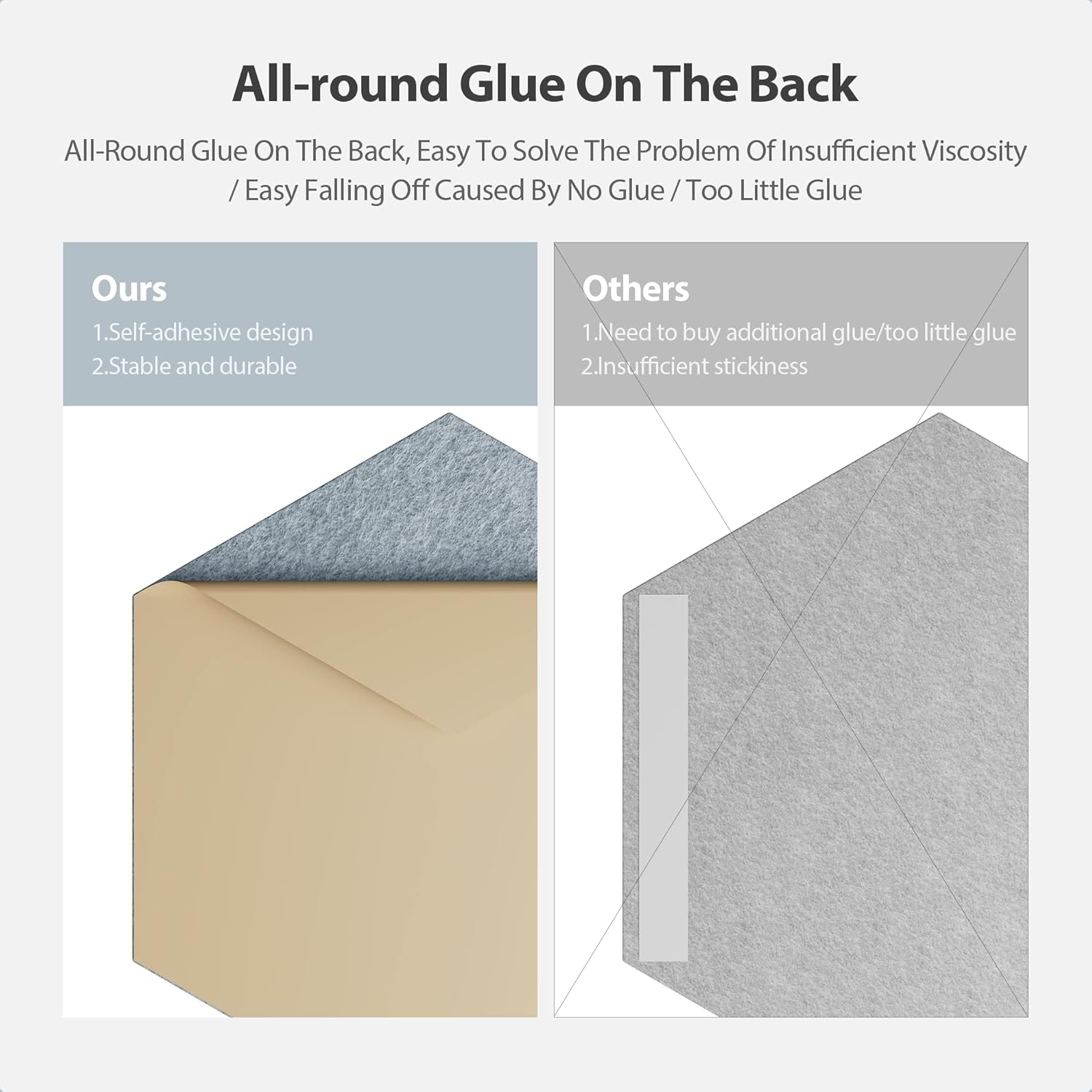 - 【FASHIONABLE HEXAGONAL DESIGN】Our sound-absorbing panel adopts a hexagonal honeycomb design. The hexagonal shape can achieve a wide range of sound-absorbing and noise-reducing effects. At the same time, you can use the sound-absorbing panel for fashionable Design, sound-absorbing panels in various colors, let you match the design
