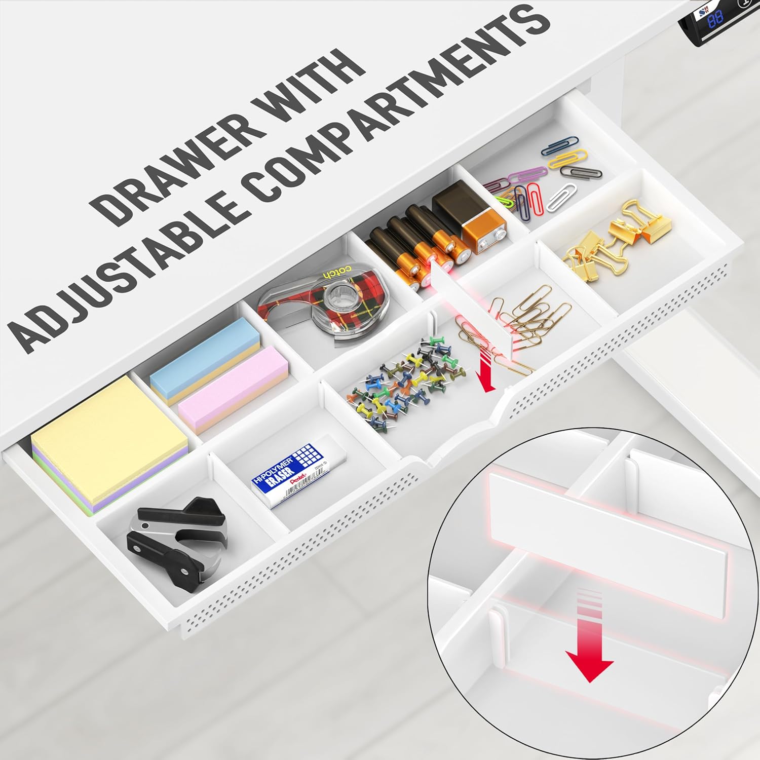 SHW 48-Inch Electric Height Adjustable Standing Desk with Drawer, Memory Preset and Cable Management Tray, White
