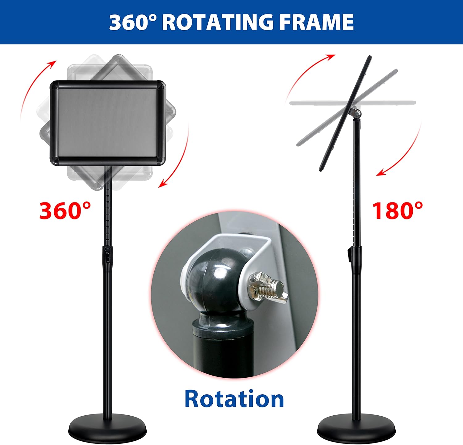 - ✔VAIIGO 6Packs 8.5"x11"Adjustable Sign Stand height is adjustable from 32" to 51". The poster frame can be rotated 360° left and right and 180° front and rear. It can also be positioned vertically and horizontally, which is very flexible.