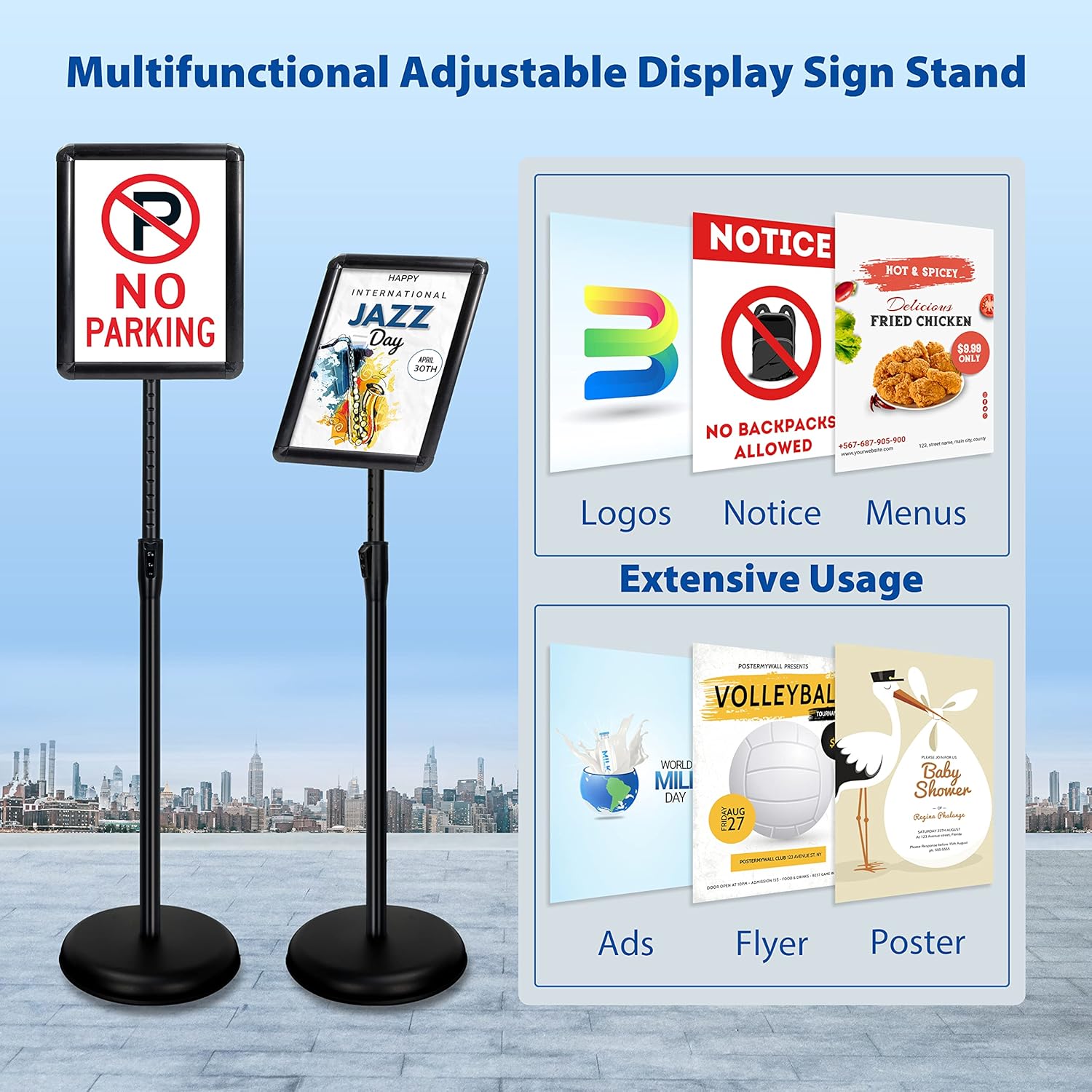 - ✔Widely Used: Sign Stand is suitable for trade exhibition, foyer, reception area, restaurant, Retail Store, office, hotel, hospital, school, bank and other public event places to display poster sign information. stands up well on hard surfaces, both suits for Indoor and outdoor.
