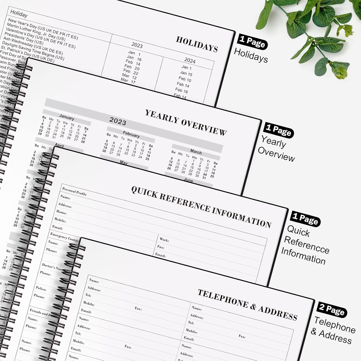 - Full Size and Enough Space: 8.5 x 11 inch, plenty of room to write down your daily activities. 1 quick reference page,2 telephone & address pages,1 convenient list of holidays, reference calendars and 195 page daily pages to accommodate your scheduling needs, can be use more than 6 months.