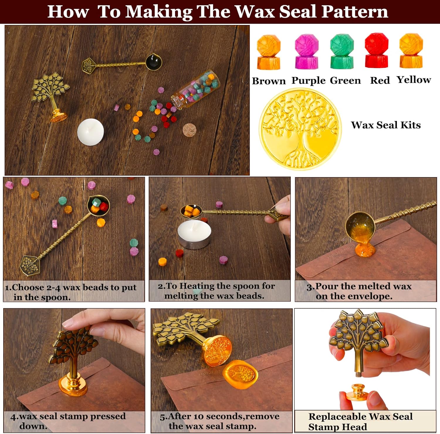 - 【Wax Seal Stamp Kit】-TIANREN wax stamp is made of quality metal head,it designed with the unique pattern from a ancient myth story ,the wax beads are in multi-colors,tea wax and wax spoon can quickly and evenly to help you make perfect wax seal pattern,you can confidently customize the seals on your invitations or your gift box.