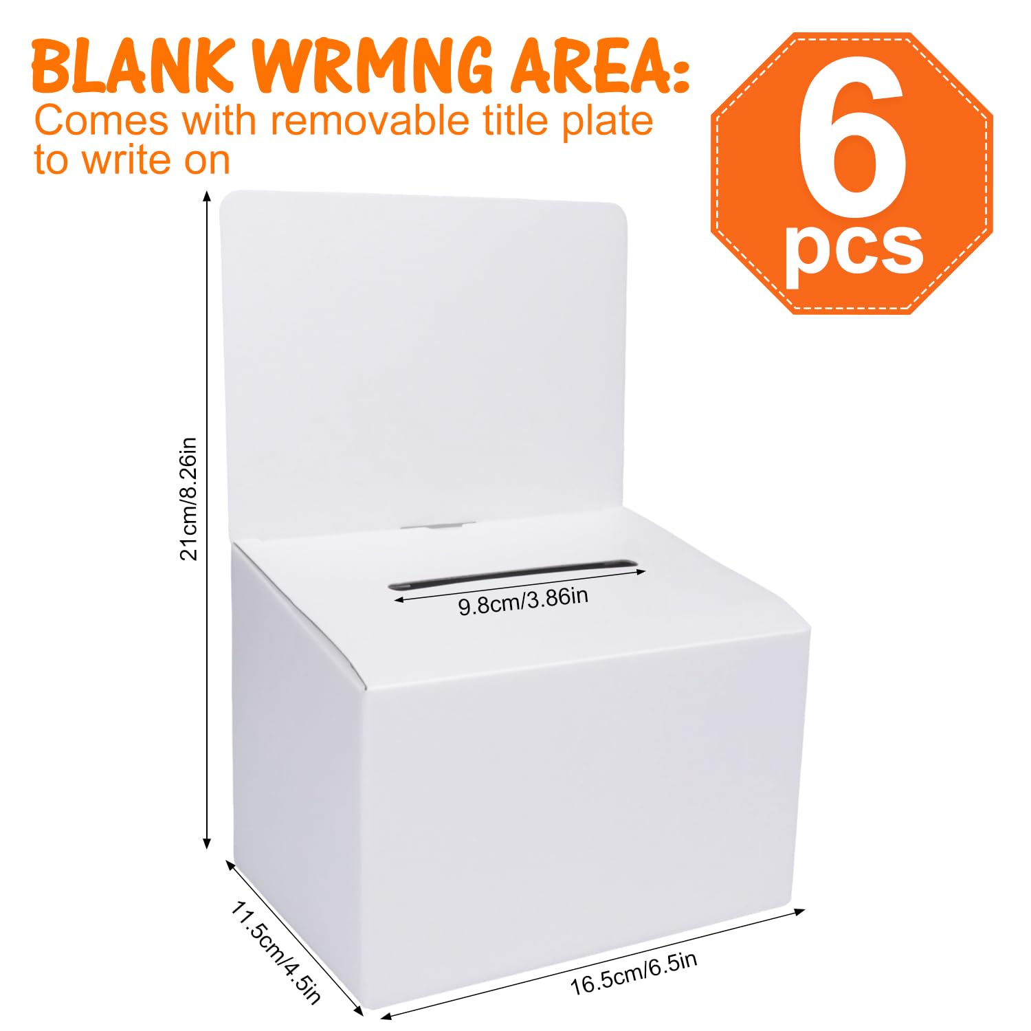 - Super Value Set: You will receive 6 white cardboard ballot boxes, Box Size: 6.5x 4.5 x 4.5 Inch ; Slot 0.28*3.86 inches; Title card size: 6.5*4.7 inches;Please refer our picture steps to assemble.