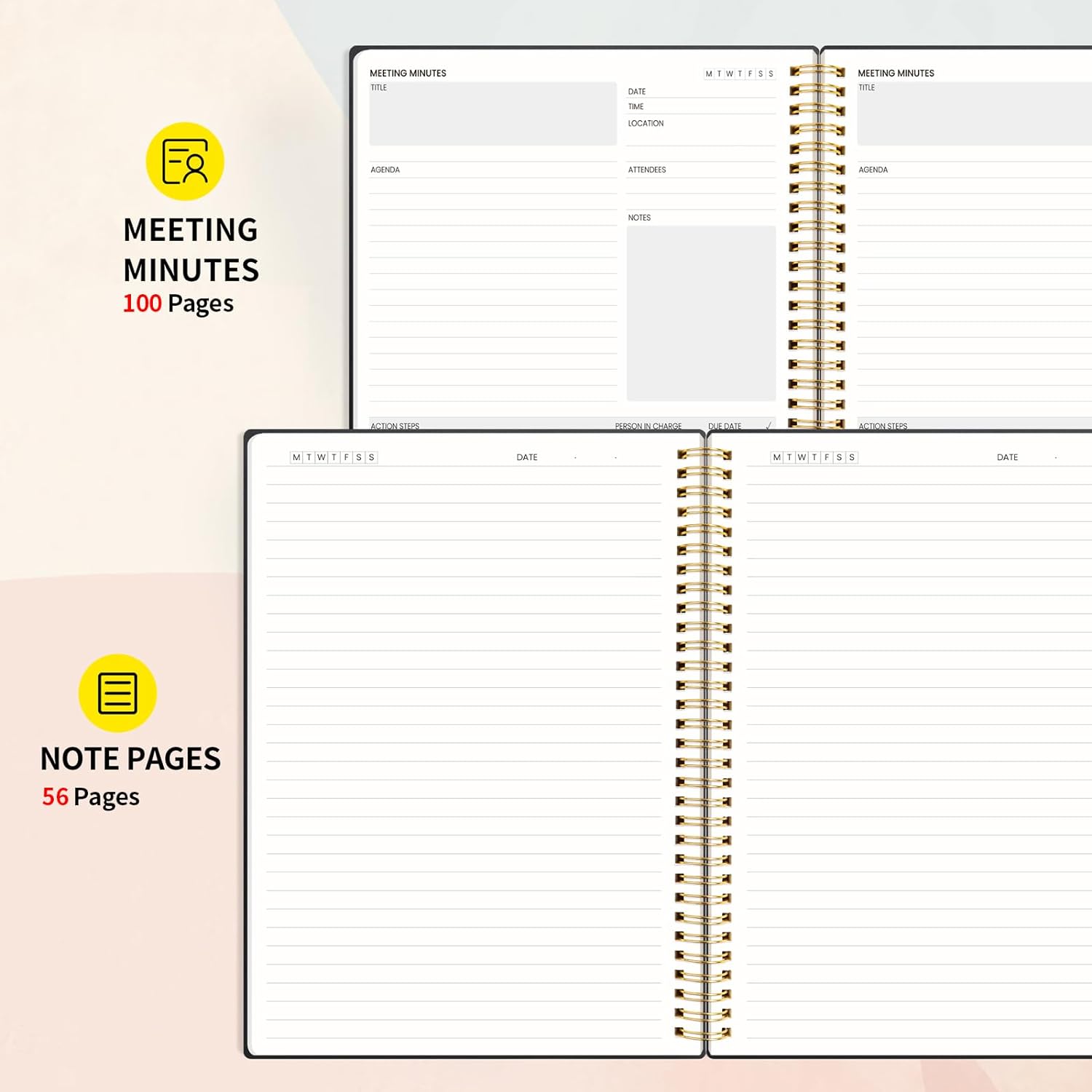 - Bonus Notes Pages In the Back: Extra 56 college ruled pages in the back provide space for note taking, and with the date section at the top for tracking them. With 100 pages for meeting minutes, the manager notebook will cover more than half a year, even in daily use. Also provides index pages for organizing this office planner.