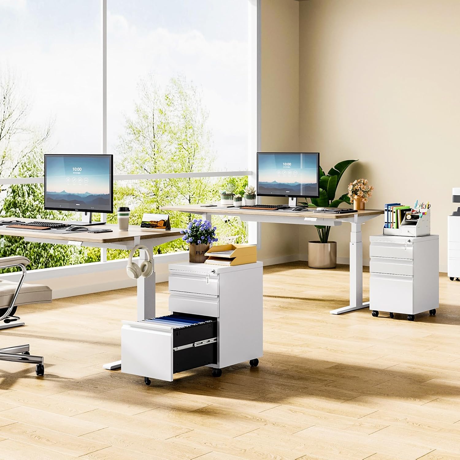 - ăFile Cabinet with Lockă: A lock is set at the top of our file cabinet and is designed to lock all three drawers. This helps to keep your sensitive documents secure from prying eyes. You are provided with two keys for the lock.