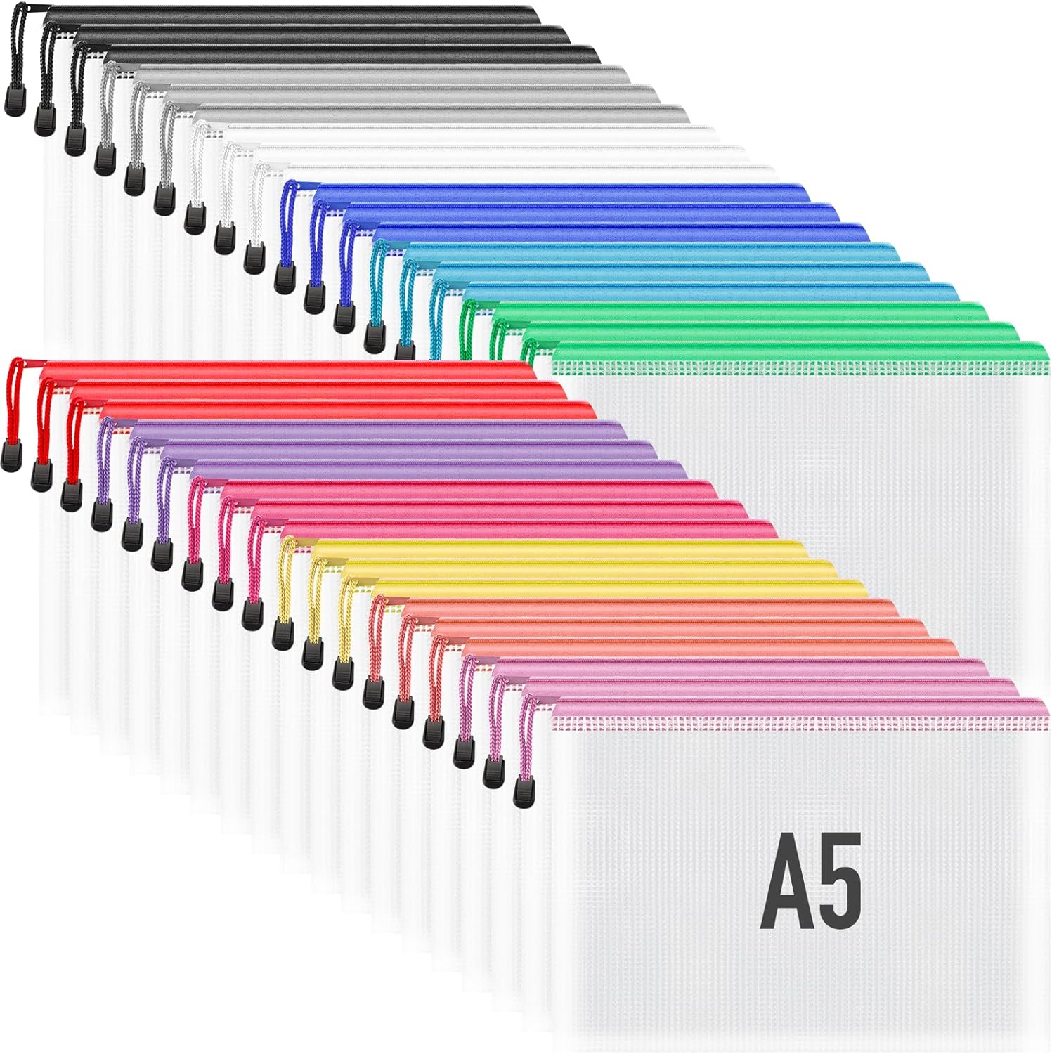 Umriox Small Zipper Pouch, 9.5x7.1 in (12 Colors, 36 Packs), Mesh Bags with Zipper, Storage Bags, Zipper Bags for Office Supplies Travel Storage