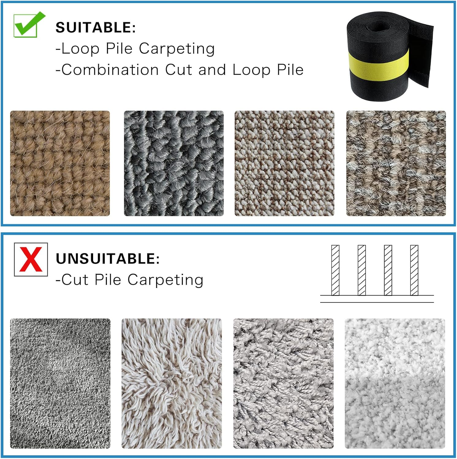 - Easy to use: the floor strip is designed in hook and loop design, grips well and easy for cutting to the length that you require; Pinch cables, just lay on the carpet, simple 3 steps, its over