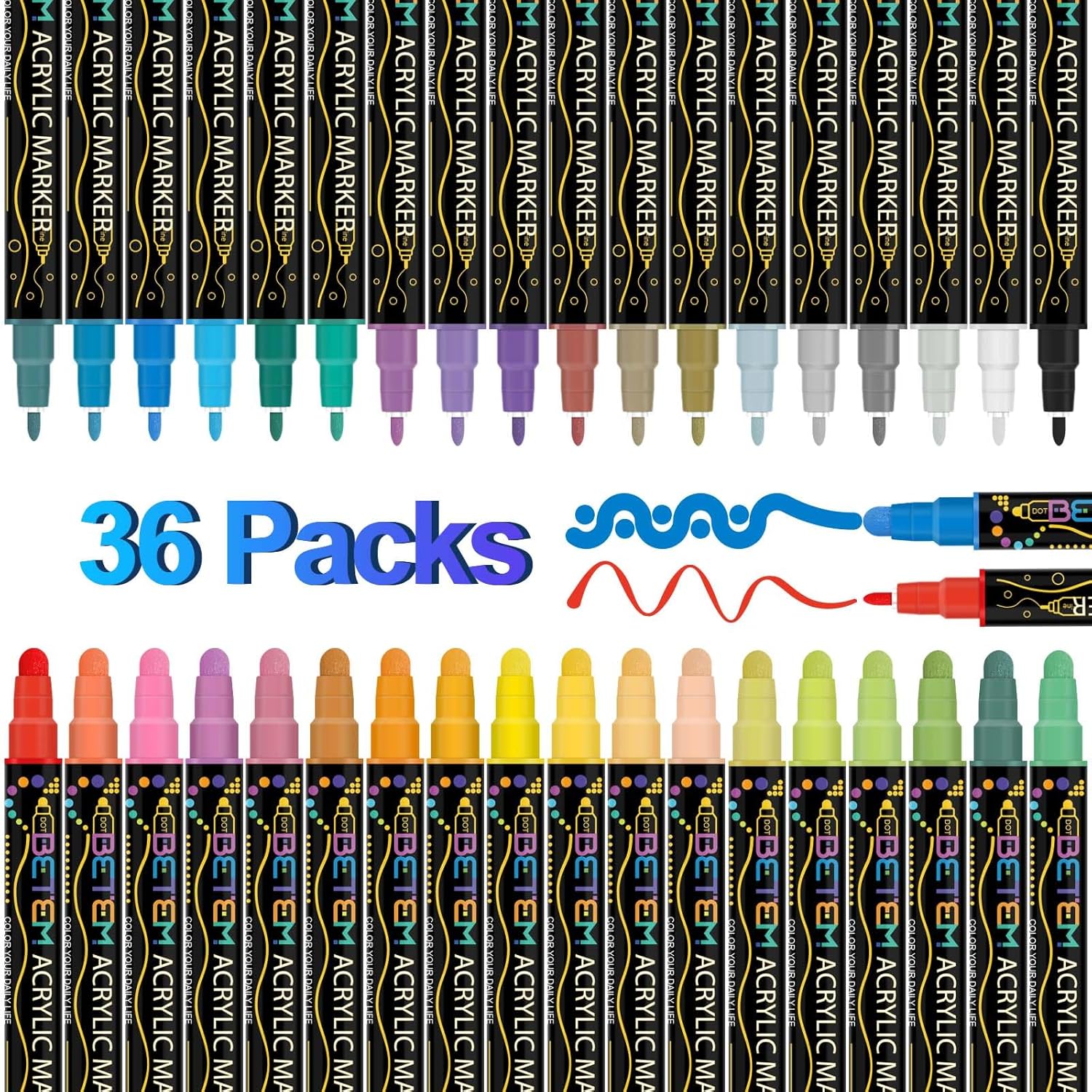 Betem 36 Colors Dual Tip Acrylic Paint Pens Markers, Premium Acrylic Paint Pens for Wood, Canvas, Stone, Rock Painting, Glass, Ceramic Surfaces, DIY Crafts Making Art Supplies