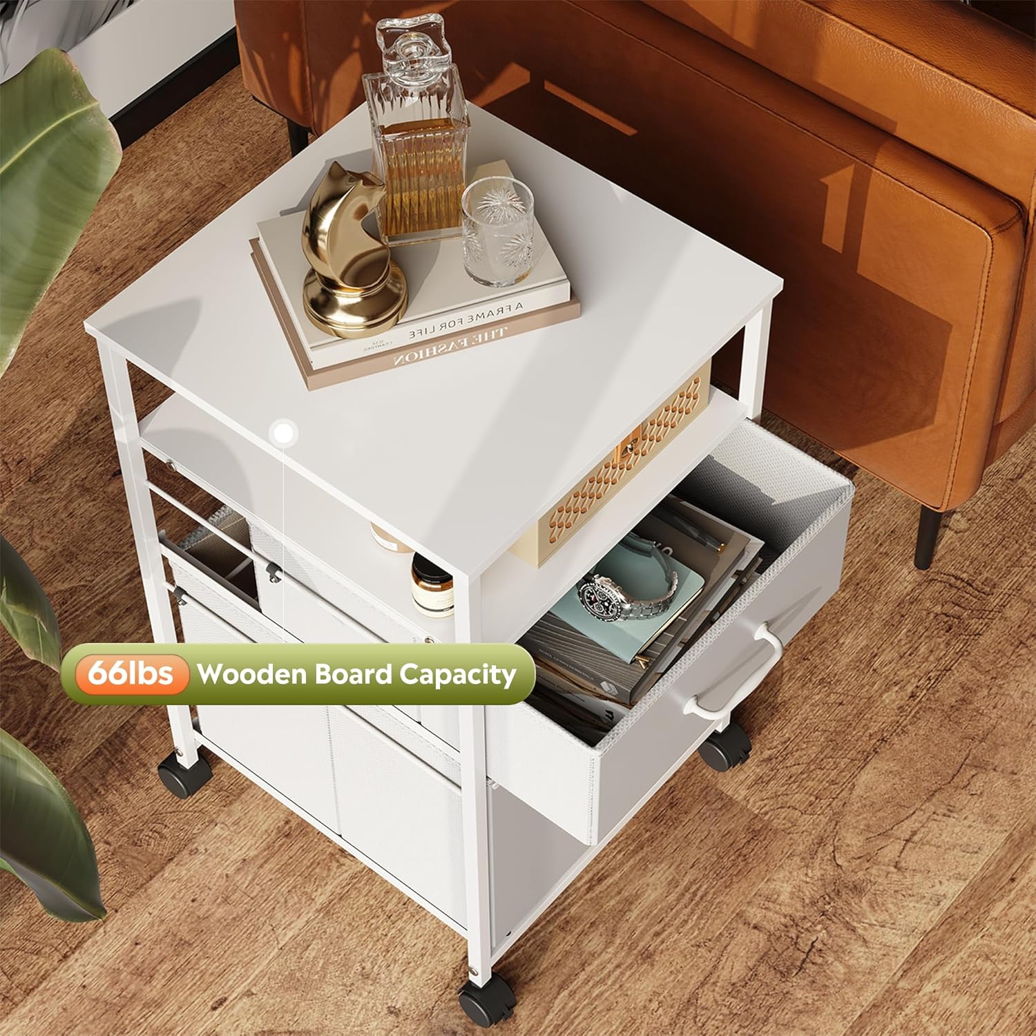 DEVAISE 2 Drawer Fabric Vertical Filing Cabinet, Rolling Printer Stand, White
