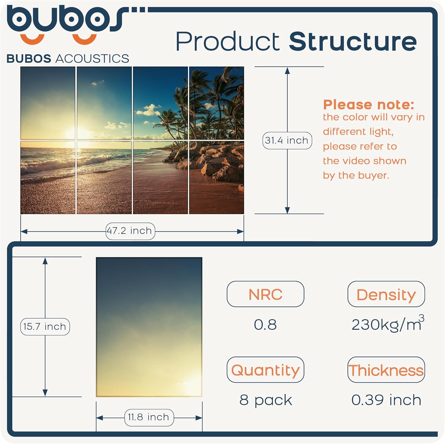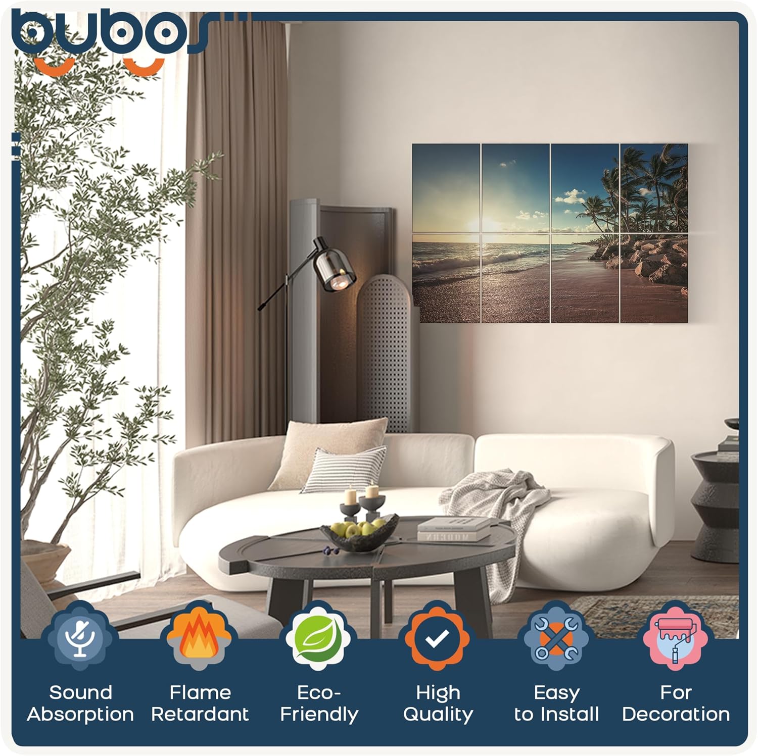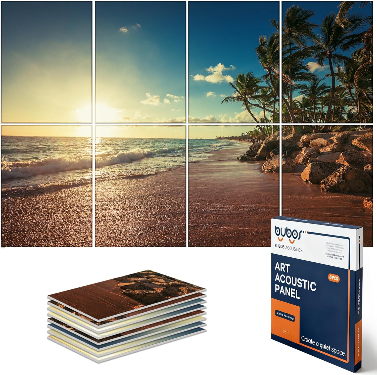 BUBOS 8 Pack Art Acoustic Panels Soundproof Wall Panel,47.2X31.4 Inches Sound Absorbing Panel,Self-adhesive Decorative Acoustical Wall Panels, Acoustic Treatment for Ceiling Home Office(Beach02)