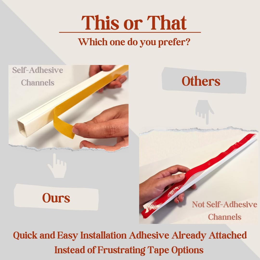 - Paintable, Cuttable and Self Adhesive Tape Cord Concealer : Evza cord cover wall comes with strong adhesive mounting tape on backside. For a perfect match, you can paint the tv cable hider wall kit in any color. Together with it's easy to cut the wiremold raceway down to your desired length with a knife or hacksaw easily. Wire conduit still the best solution to hide TV wire on walls !