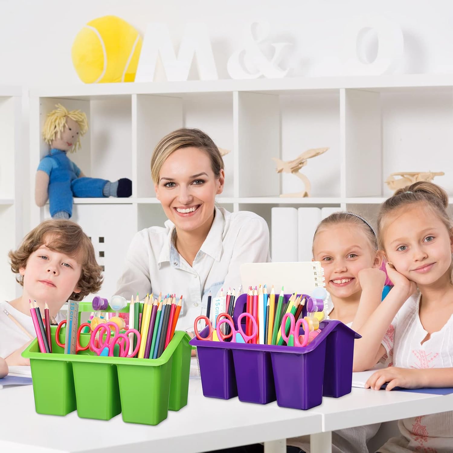 - Package Quantity: you will receive 12 pieces of multicolored storage caddies bulk with handle in different colors; Each storage caddy has 4 separate compartment inside, they can store kids' drawing tools, pencils, glue sticks; The compartment design will make your items look very neat and simple