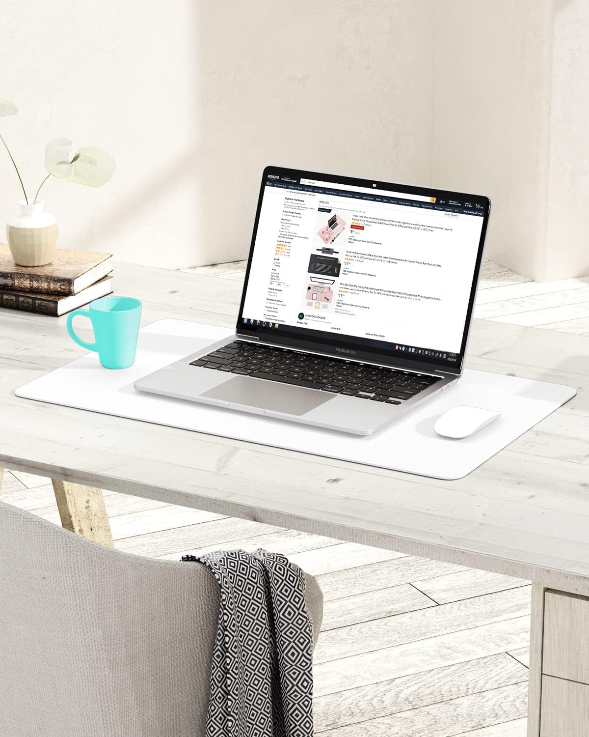 YSAGi Non-Slip Leather Desk Pad, Waterproof Laptop Computer Desk Keyboard Mat, Table Protector Blotter Mat, Large Mouse Pad for Office/Work/Home/Decor(White, 23.6" x 13.7")