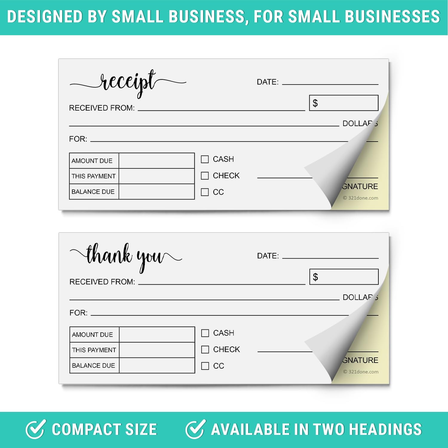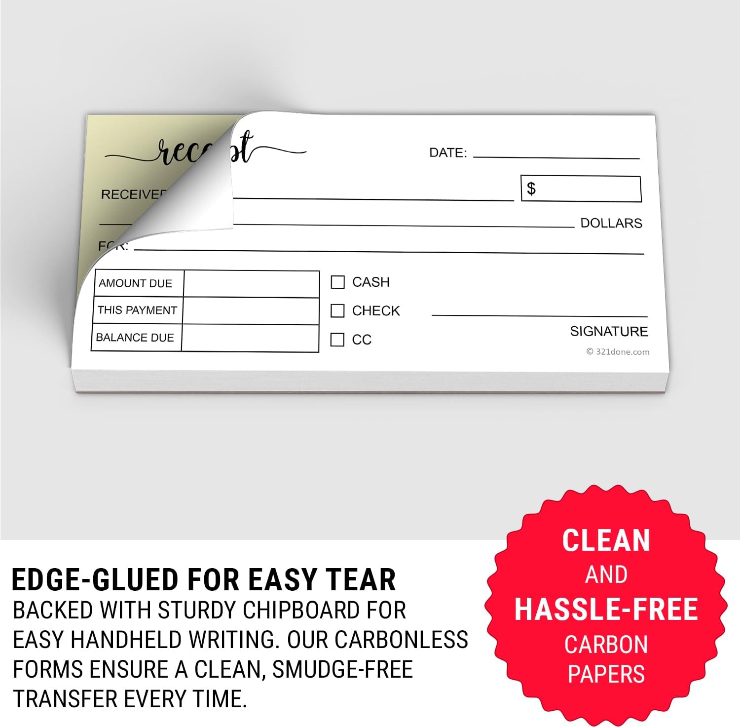 - CONVENIENT HANDHELD DESIGN: 2 receipt books per pack. Each pad contains 50 checkbook size (2.75 x 6 in.) white/yellow sets on a sturdy chipboard backing for easy handheld writing