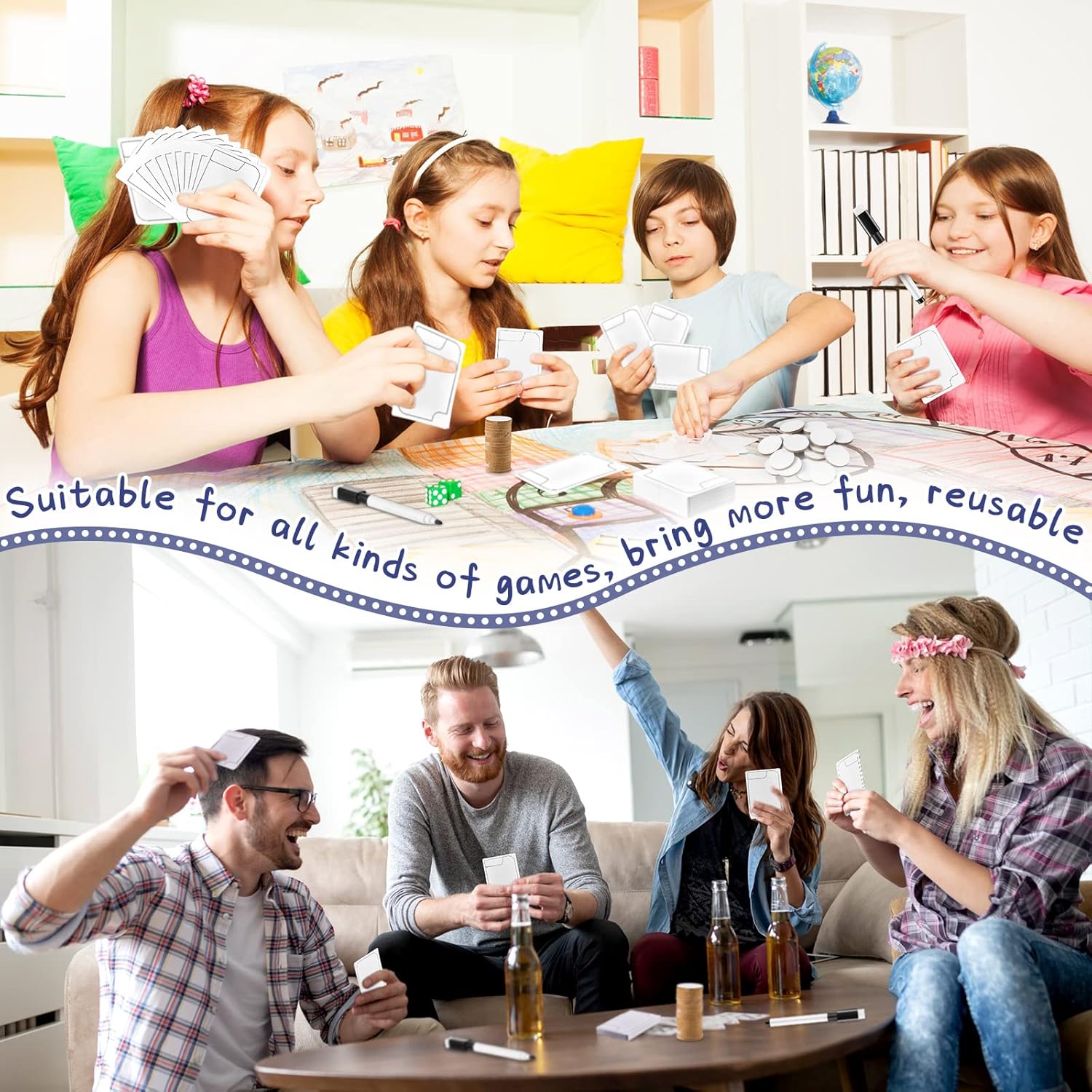 - Size Information: the blank playing cards are about 3.5 x 2.5 inches, plastic tokens coins are about 1 inch in diameter and the erasable pen is about 1.15 inches, compact sizes allow you to carry them around, to play games anywhere you want