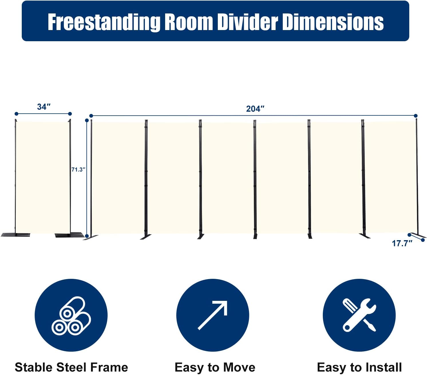Room Divider 6FT Portable Room Dividers and Folding Privacy Screens, 204'' W Fabric Divider for Room Separation, 6 Panel Partition Room Dividers Freestanding Wall Divider Screen for Dorm Studio Office