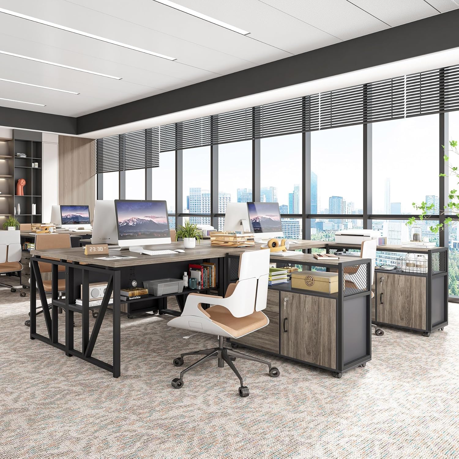Tribesigns L Shaped Desk with Drawer Cabinet, 55" Executive Computer Desk and lateral File Cabinet, 2 Piece Home Office Furniture with Drawers for Hanging File, Doors with Locks (Gray, 55 inches)