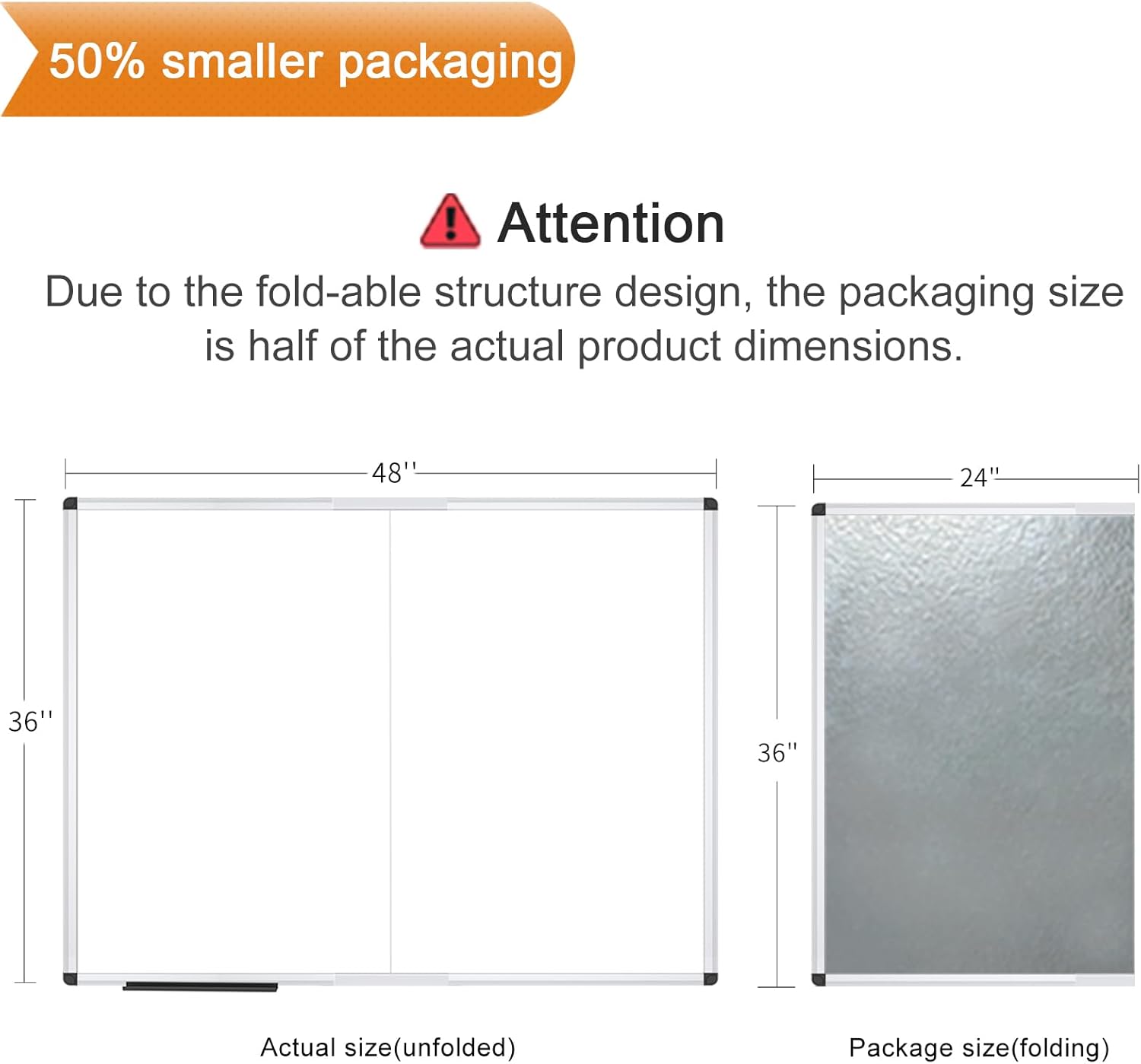 - [High Quality Details] Smooth & durable magnetic writing surface, easily dry wipe with all dry-erase markers. Folding design ensures that the whiteboard will not warp in transit. Anti-Scratch silver finished aluminium frame, ABS plastic corner with screw-fixing in corners, Detachable Marker Tray.