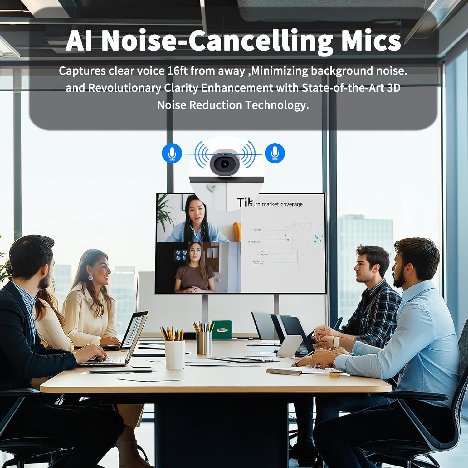 - 【AUTO FRAMING】This 4k webcam utilizes the automatic framing technology of the ultra-high-definition lens, so that all participants in the panoramic field of view are located in the center of the screen without manual adjustment. Auto tracking webcam built-in face detection algorithm, automatically detect participants, and provide ideal framing.